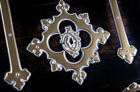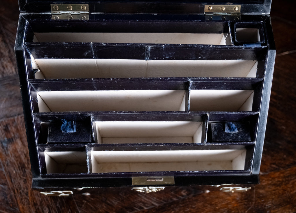 Lucy Leuchars, James’ widow, continued the business under the name of L. Leuchars. In 1837, the same year as Queen Victoria came to the throne, the firm was awarded the Royal Warrant for their supply of dressing cases to the royal family.