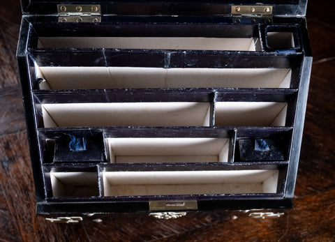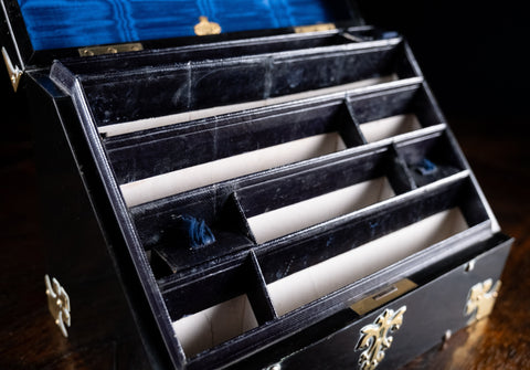 Expanding to 39 Piccadilly in 1841, the name had now changed to Lucy Leuchars & Son; the ‘Son’ referring to William Leuchars. After Lucy’s death in 1847, William gained sole responsibility for the business. Leuchars exhibited and won prize medals for his dressing cases at the Great Exhibition of 1851 and the International Exhibition of 1862, winning a further silver medal at the International Exposition of 1867 in Paris.