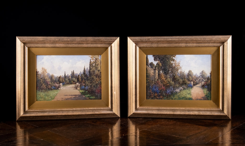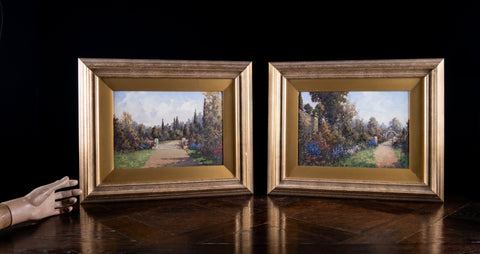 James Jerome Miller (fl.1875-1900) - Pair Of Country Gardens. Oil.