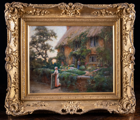 Charles William Norton (c.1870- 1946) - Thatched Cottage At Twilight