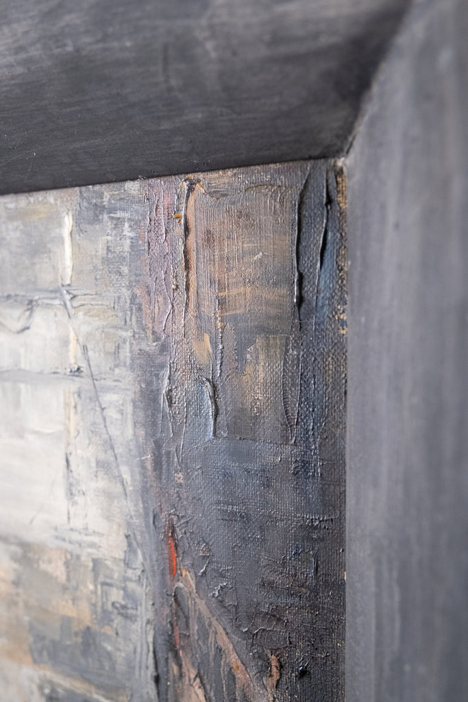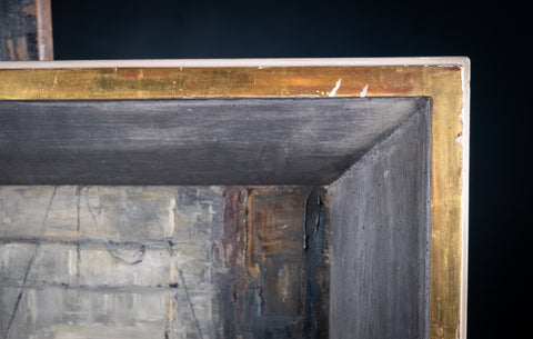 The work is housed in a deep frame with black painted interior and gilded border. The 'Robert Sielle' label to the back of the frame is similarly age toned to that on the back of the canvas indicating the work is housed in its original frame as the artist intended.