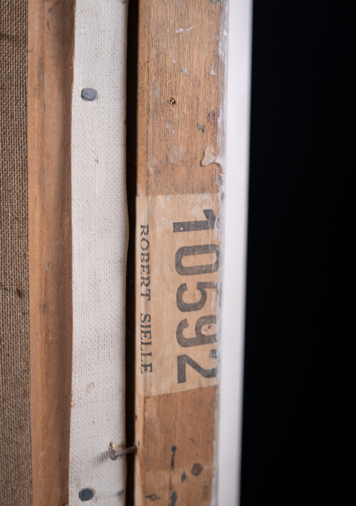 Robert Sielle (1895-1983) was a leading London frame-maker and exhibition agent from the 1930s-70s. The address on the label verso was his premises between 1948-1982. The price is stated in guineas, which although long phased out, was still a currency used for pricing high-end or luxury goods until the decimal system was introduced in 1971. We can, therefore, date this work between 1948-1971.