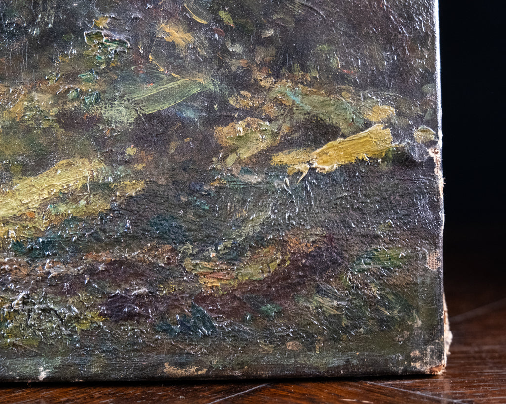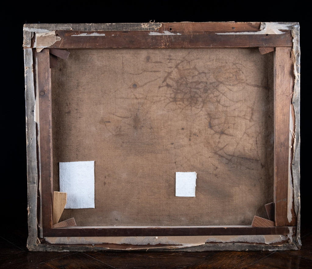There are some very small paint losses here and there and some craquelure (please see photographs, but generally the painting displays very well.
