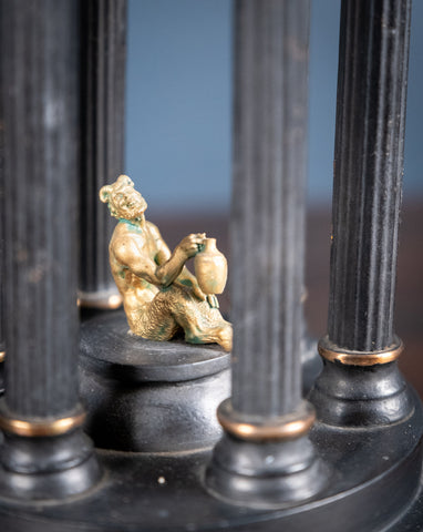 A stunning large pair of Grand Tour slate temple models with gilt bronze figures of Bacchus and Pan housed within, c.1880.