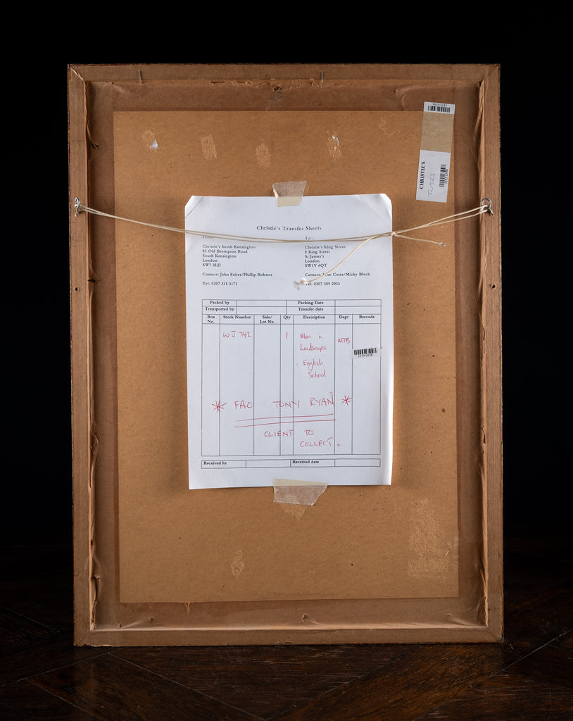Christies labels verso. Christies have advised that the work was collected by the vendor and was not listed for sale; they have no information regarding the artist.