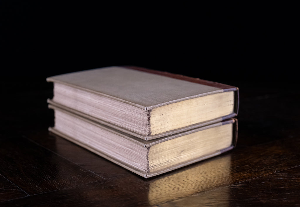 Each volume is attractively half bound in tan leather with five raised bands to the spine and gilt stamped title and volume numbers to the upper sections. Cloth boards. There is some light shelf wear to the spine leather but overall bindings are in a very good clean condition.