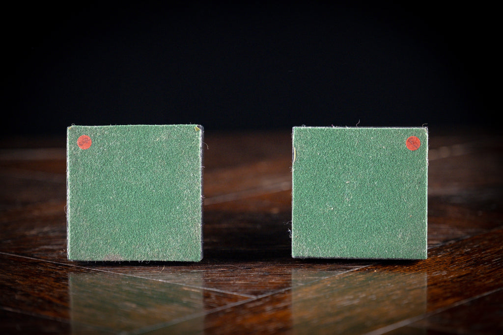 There are some signs of wear commensurate with age to include one small chip to the edge of one obelisk (please see photographs). Green baize bases.