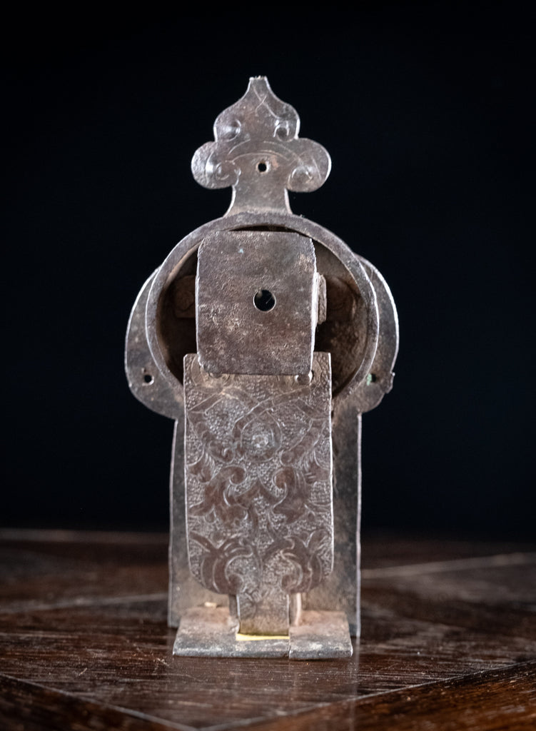 The lock is of good proportions with a fine grey/black patina. Excellent quality workmanship throughout with fine floral engraving.