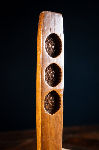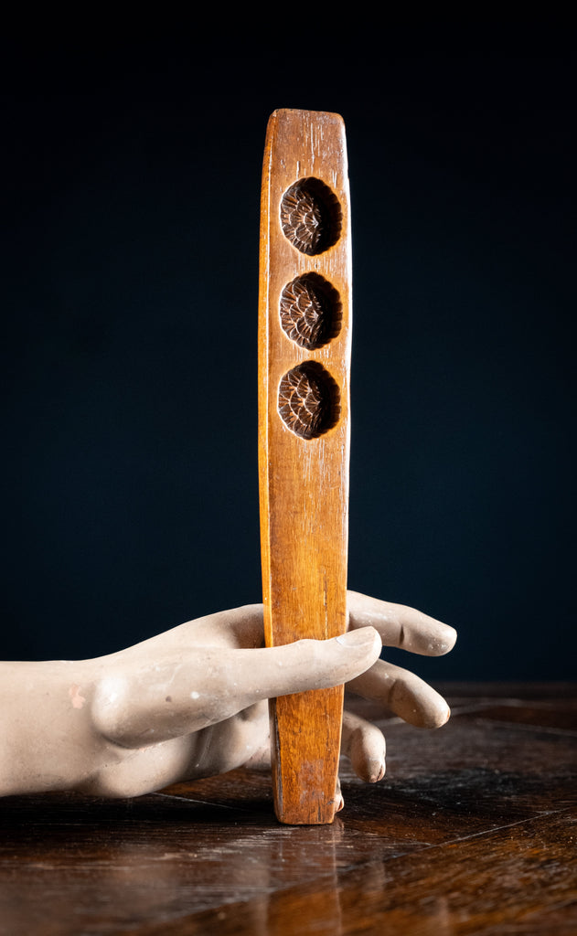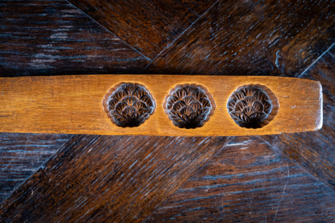 A 19th century Japanese Wagashi confectionary mould of three intricate flowers.
