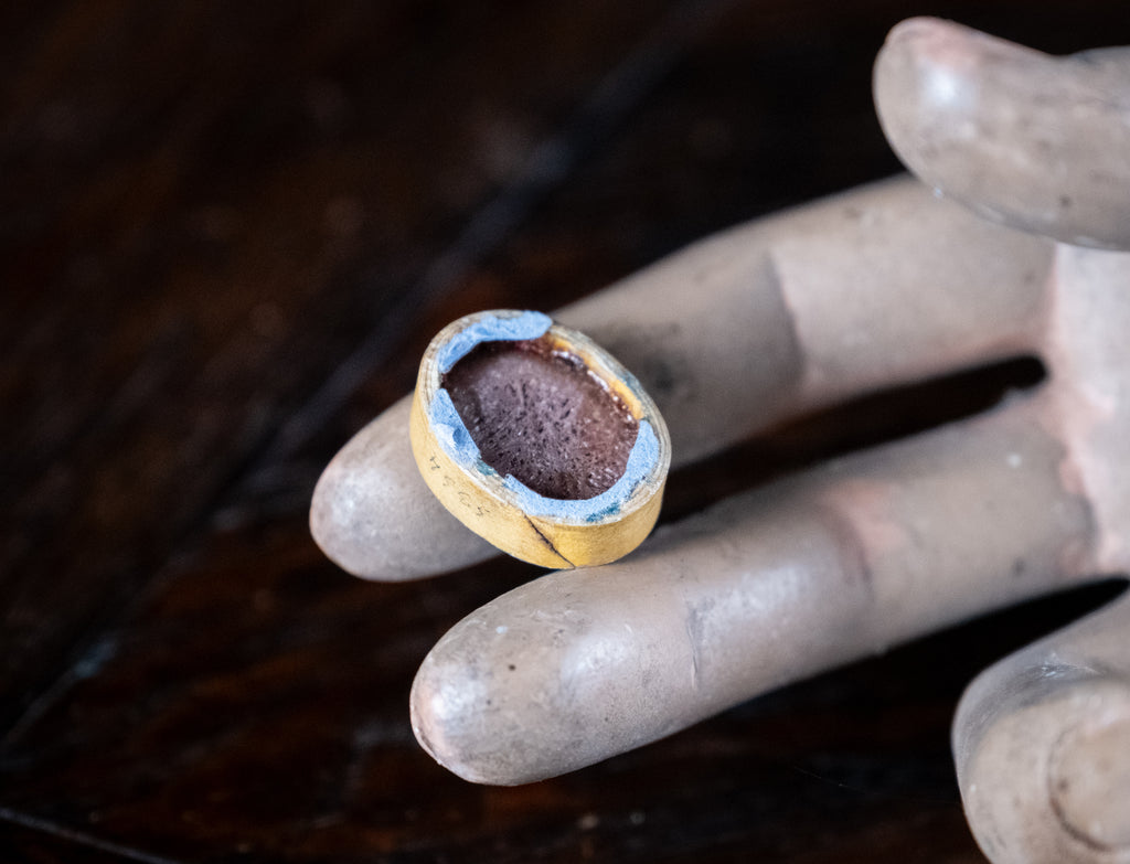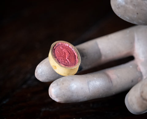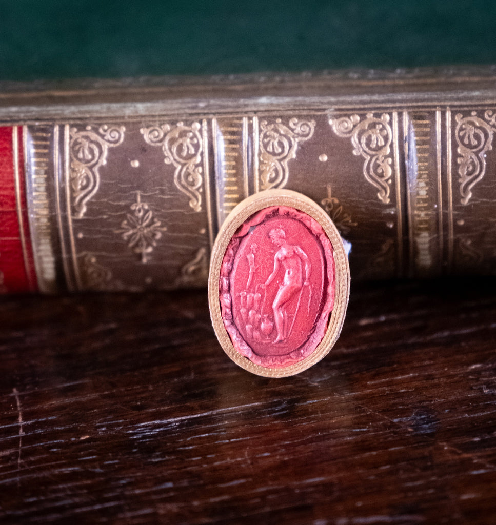 The intaglio depicts a detailed classical scene, set within a card mount with a gilded border. Numbered to the side.