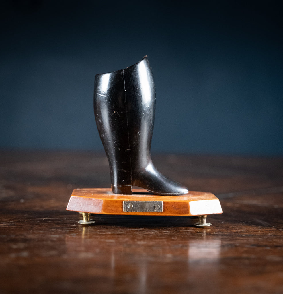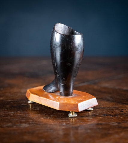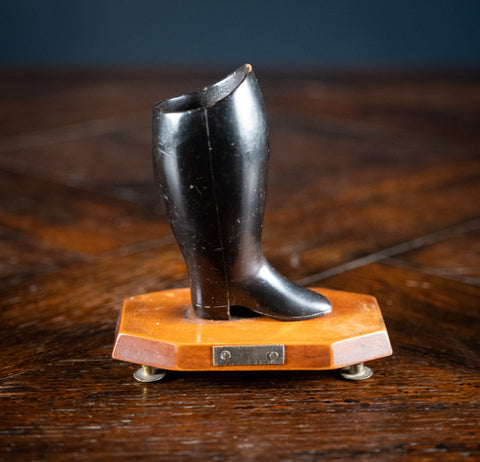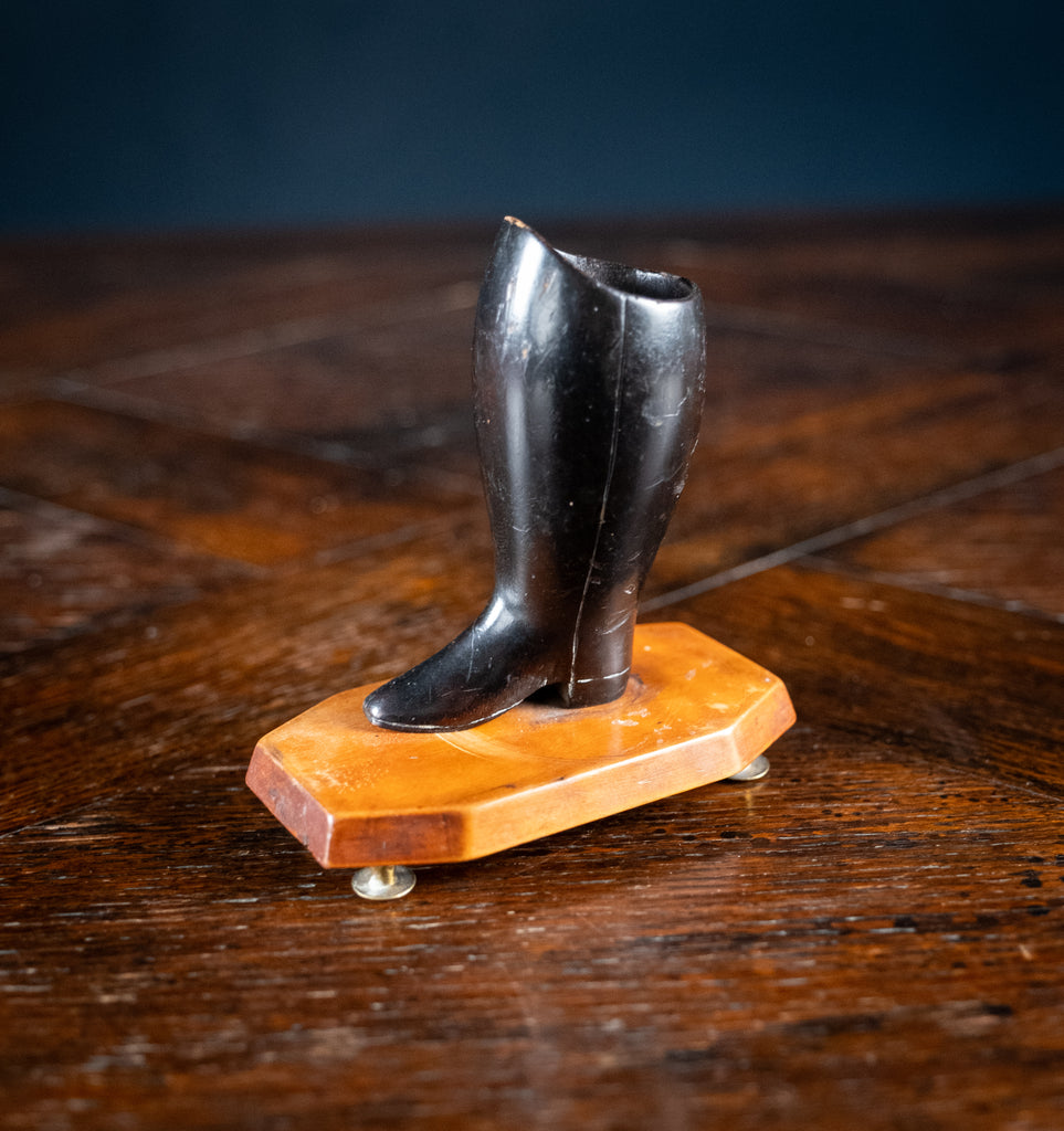 A delightful late 19th century novelty vesta / matchstick holder in the form of a boot with match striker to the base.