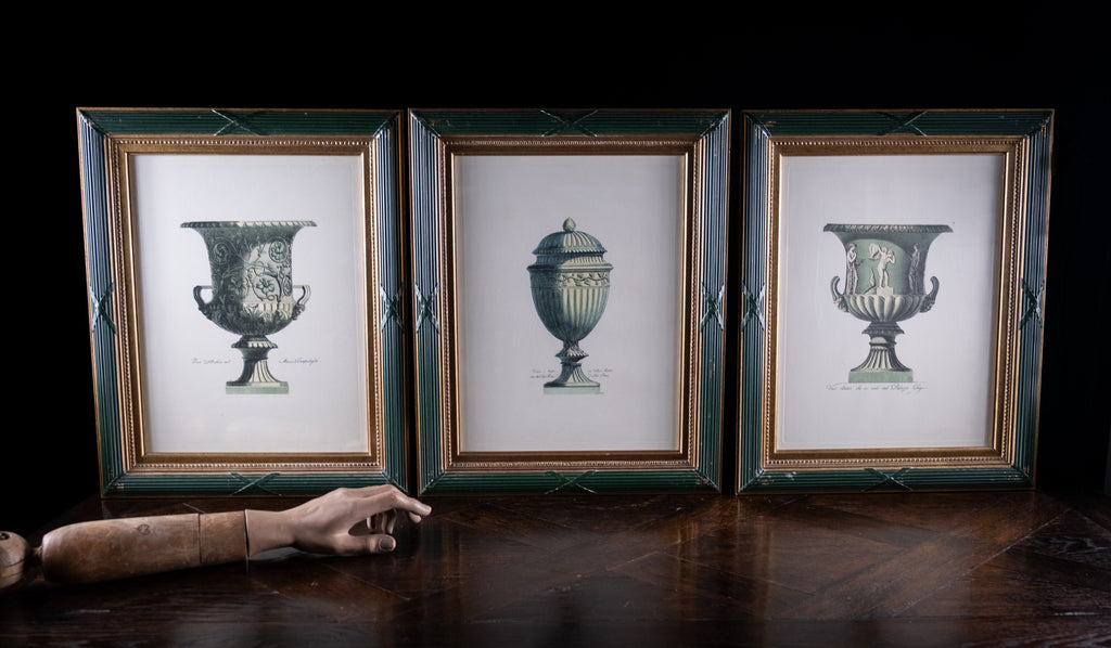 After Giovanni Battista Piranesi (1720-1778), a set of three contemporary prints of architectural urns. Each study is of classical form and design.