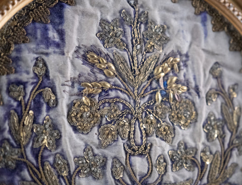 An early 19th century, possibly late 18th century, sequin and embroidery textile fragment. Likely Indian.