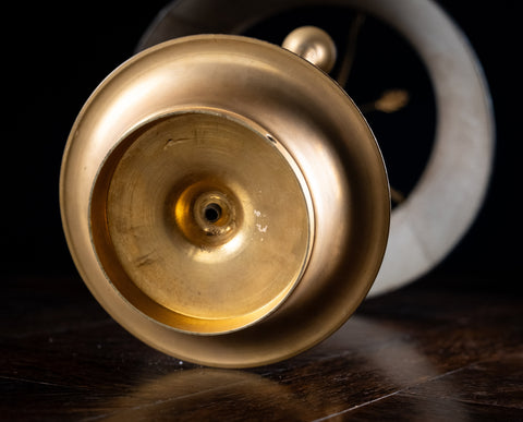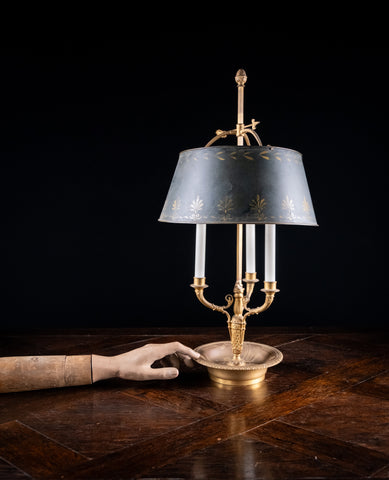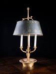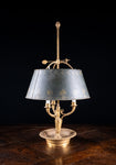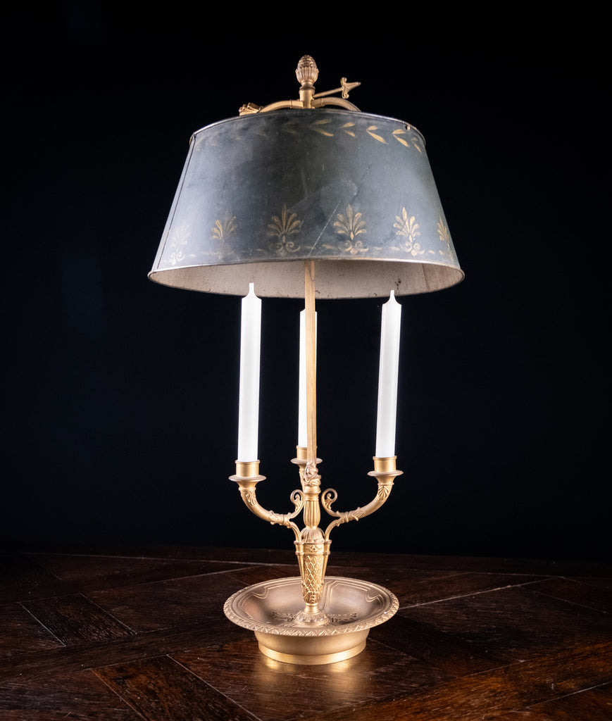 A french gilt brass bouillotte candle lamp, circa. early 20th century. Currently with three wick candles but drilled holes are present for electric (please see photographs).