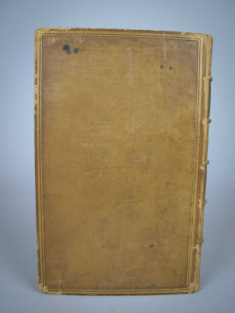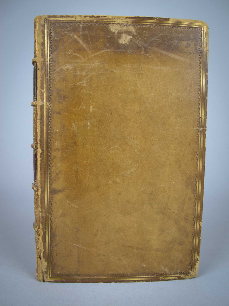 Octavo. Fully bound in calf with blindstamped and gilt decoration to the boards. The spine boasts five raised bands with intricate gilt decoration. All board edges also bear gilt decoration. The boards show scuffing and the extremities show rubbing from general shelf wear, particularly to the spine edges. The boards remain firmly attached.