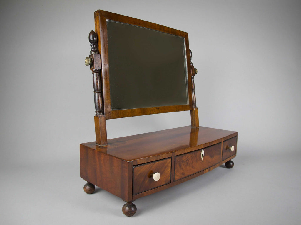 A very attractive 19th century Victorian mahogany table swing mirror boasting three drawers, a diamond key escutcheon and orb feet.