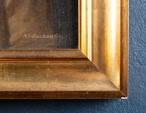 Alexander Strahan Buchanan (1870-1956) was a London painter who exhibited between 1902 and 1914. As his son was born in 1910, this work would have been painted c.1913. It is a wonderfully delicate work with great use of colour and light.