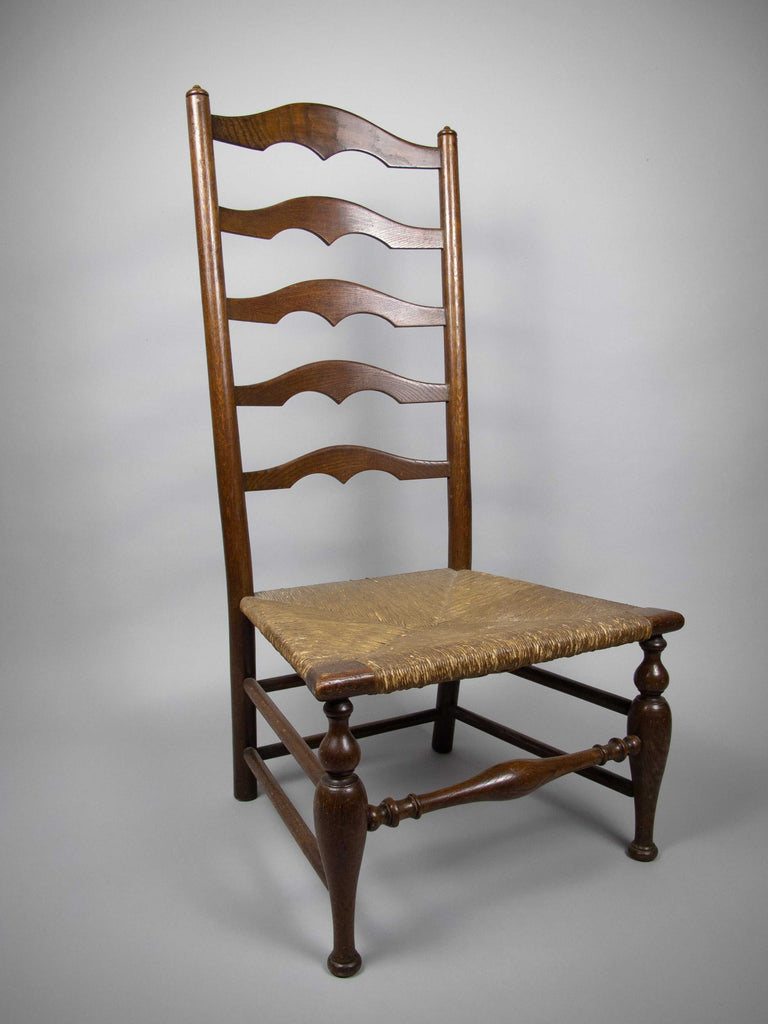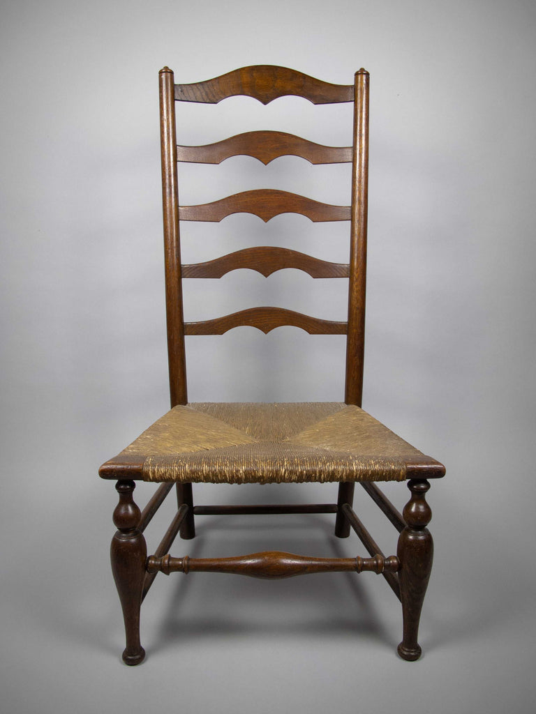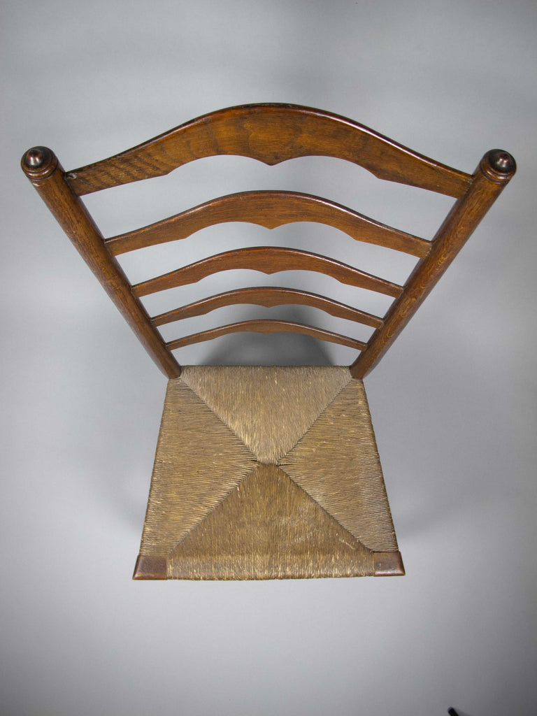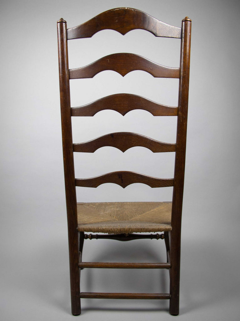 A very attractive 19th century elm and rush ladder back chair with a rush seat.