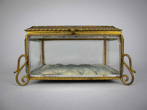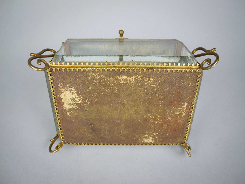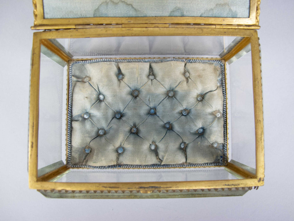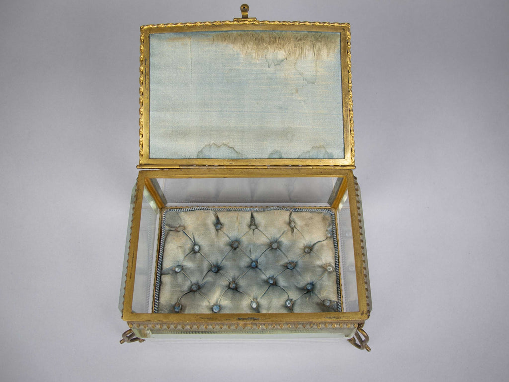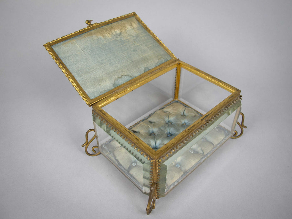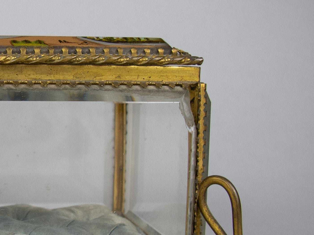 Thick bevelled glass forms the case and all panels remains in a very good condition excepting the front panel which has suffered a chip to the top right corner (please see photographs).