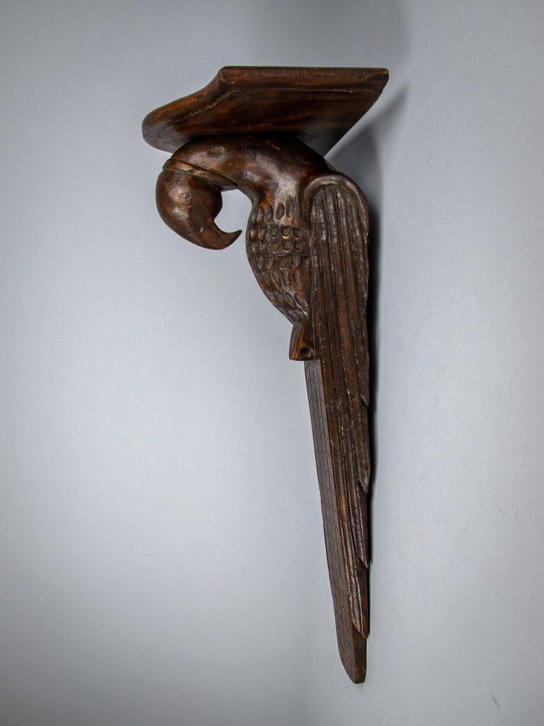 Art Deco Carved Parrot Wall Sconce Shelf, c.1930.
