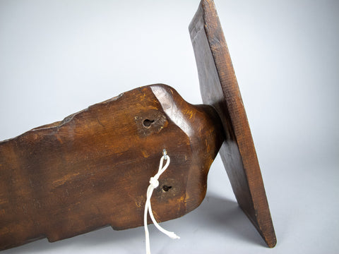The shelf has a few mark commensurate with age but generally remains in a very good condition overall and boasts its original finish. The rear has two holes to enable close fixture the wall. A later hoop has been affixed to enable more flexible hanging, which can be removed if desired.