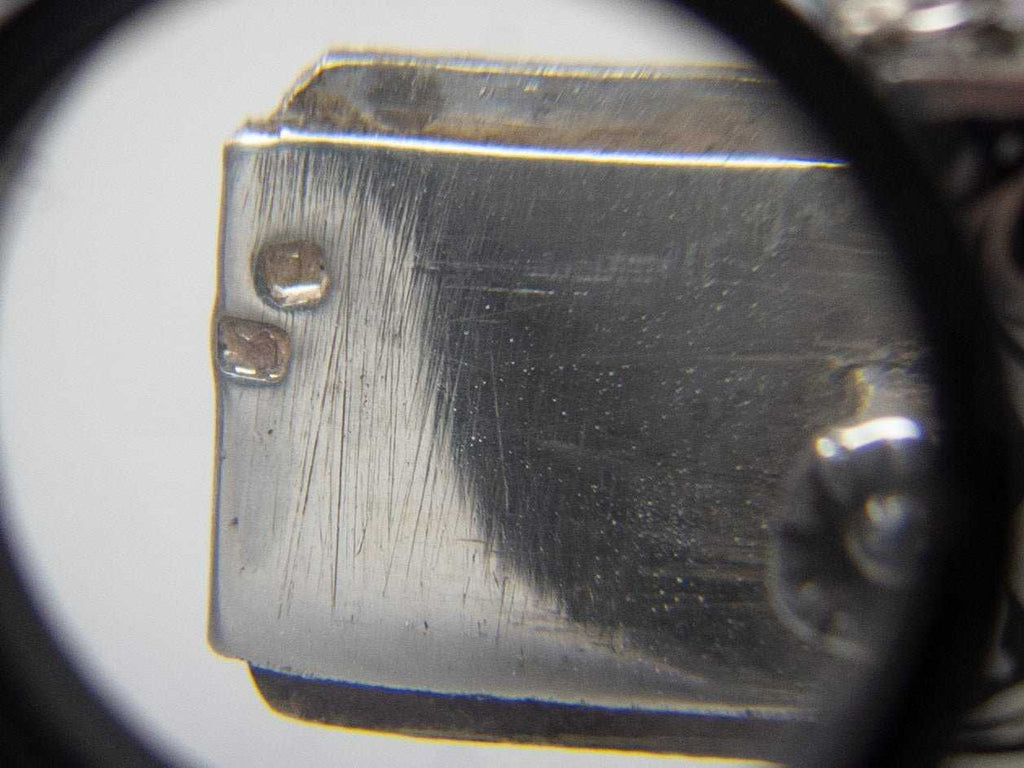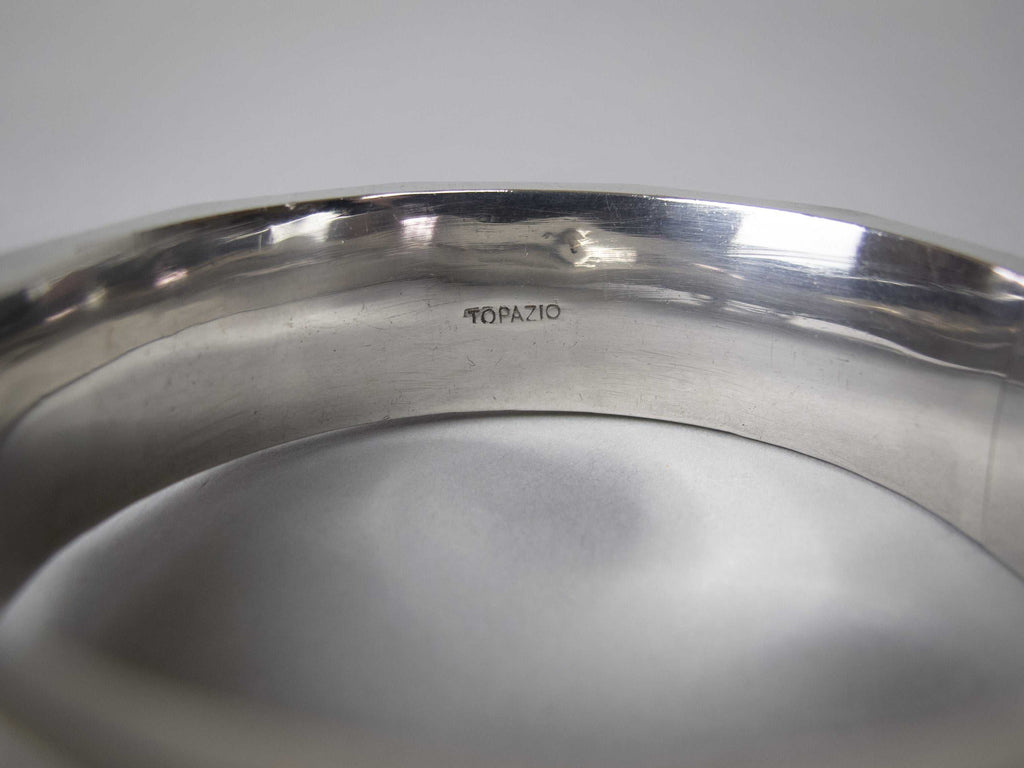 The 'Topazio' maker's name is clearly stamped to the inside of the bracelet. The Topazio hallmark of a crowing cockerel with '833' silver purity is stamped to the inside of the clasp, dating the piece c.1938 when that particular hallmark was first introduced.
