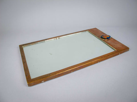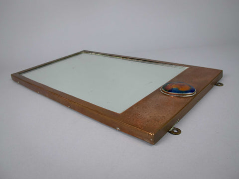 An Arts & Crafts hammered copper and enamel wall mirror, c.1910.