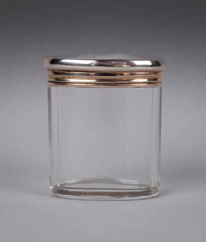 The silver lid shows signs of wear commensurate with age but is free from dents and remains attractive. The glass pot remains in a very good condition, free from chips and cracks.