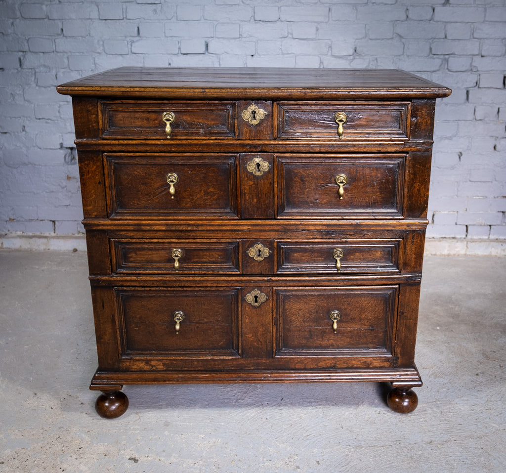 A stunning Charles II English oak chest of drawers, circa. 1680.