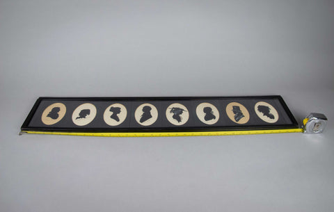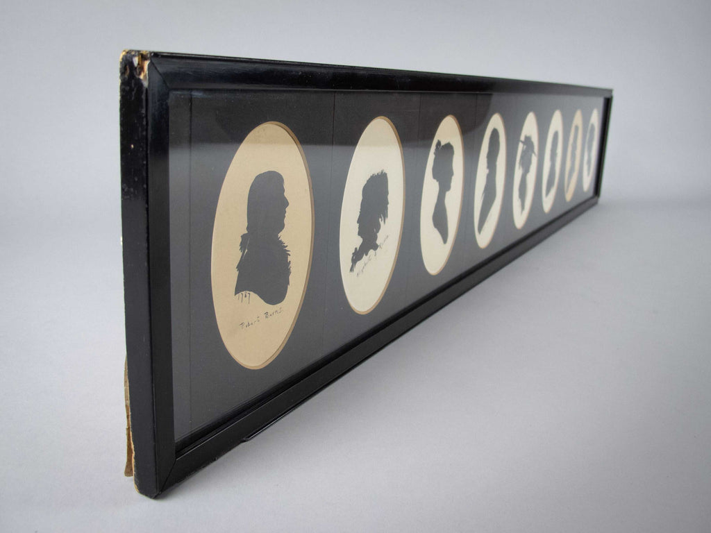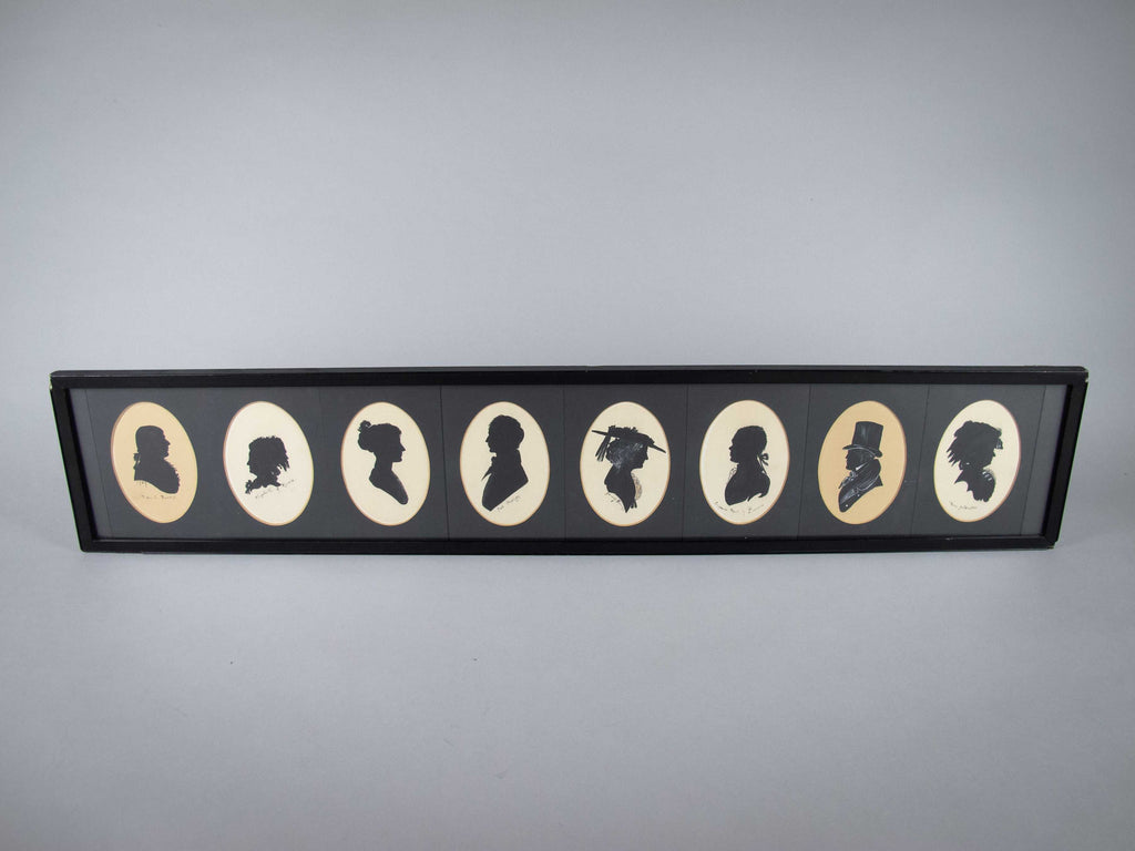 A collection of eight 19th century silhouettes, all housed in a large ebonised glazed frame, which include: