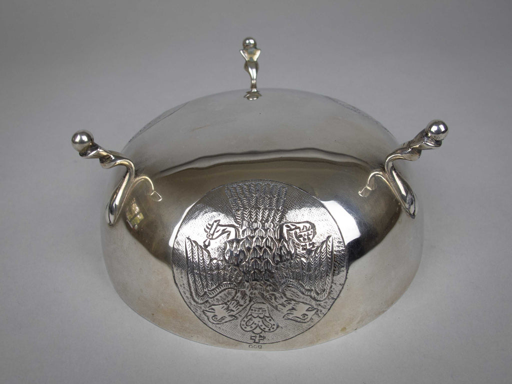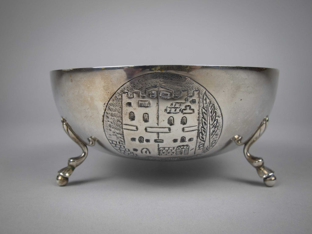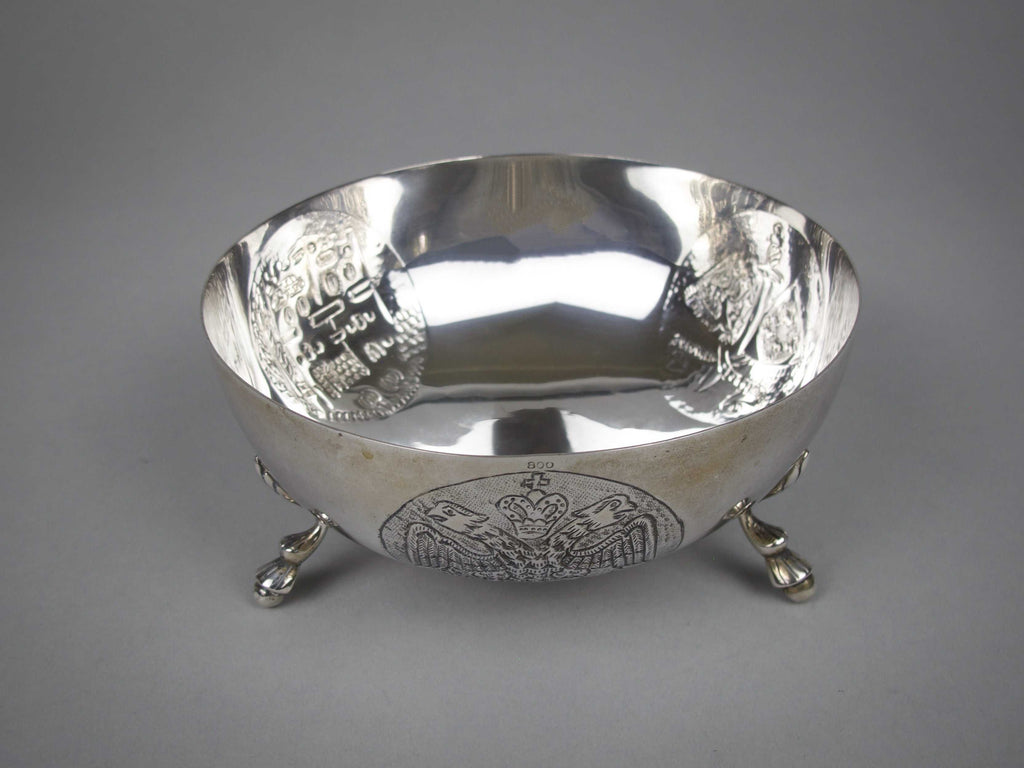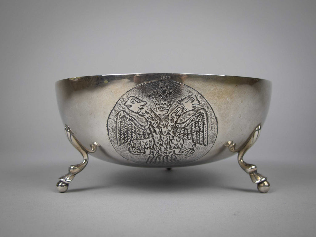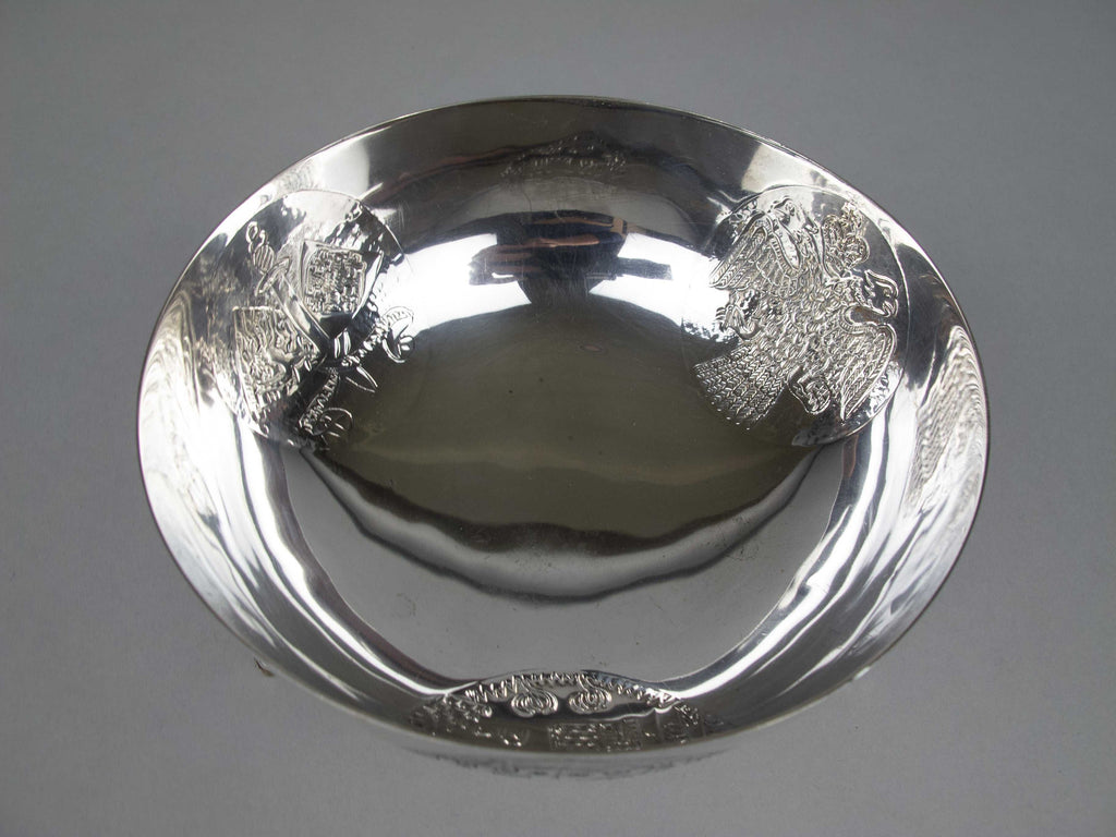 A continental .800 silver bowl with Byzantine and Jerusalem crests.