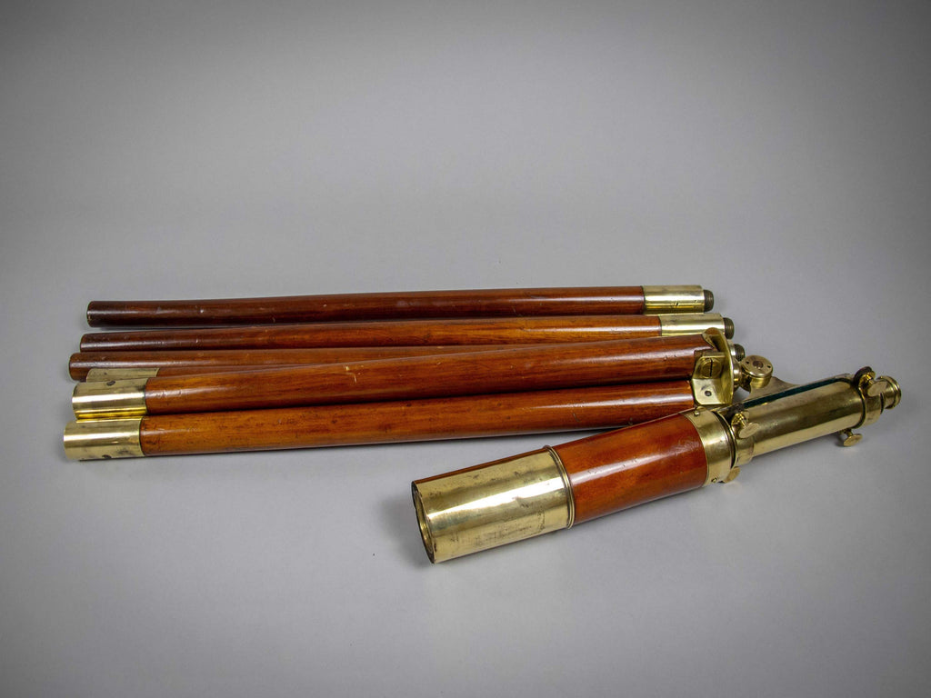 A mid-19th century Dolland of London 'Day or Night' brass and mahogany telescope, complete with its original mahogany and brass folding adjustable tripod.