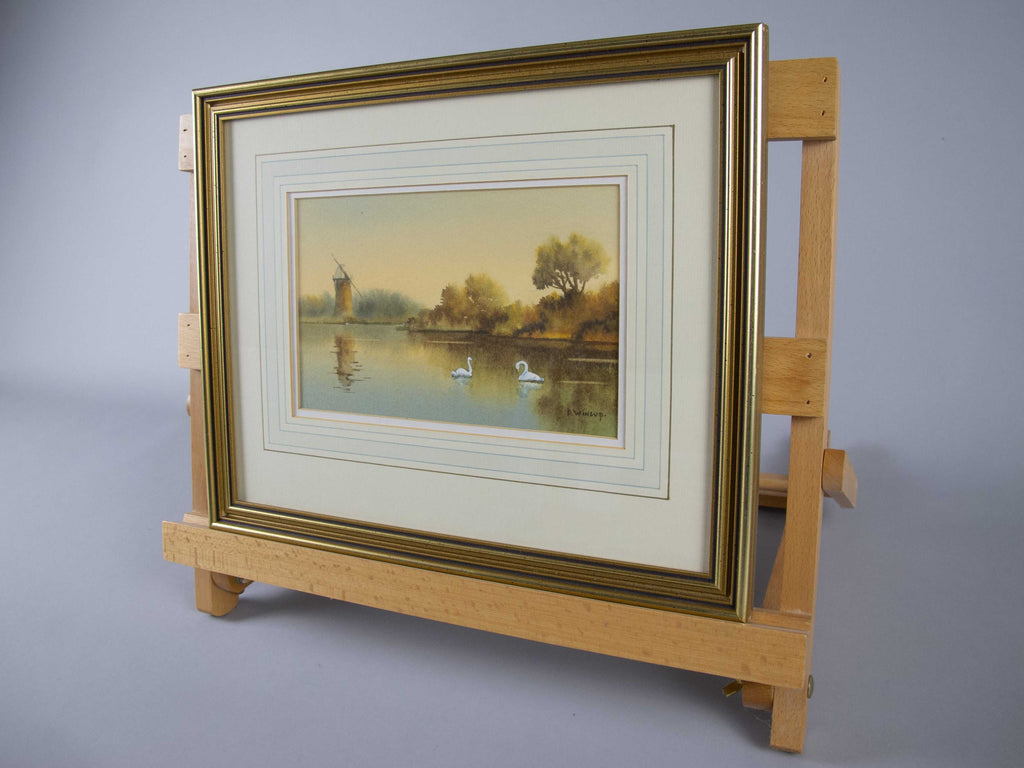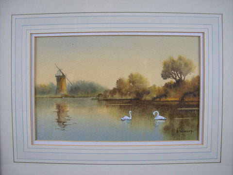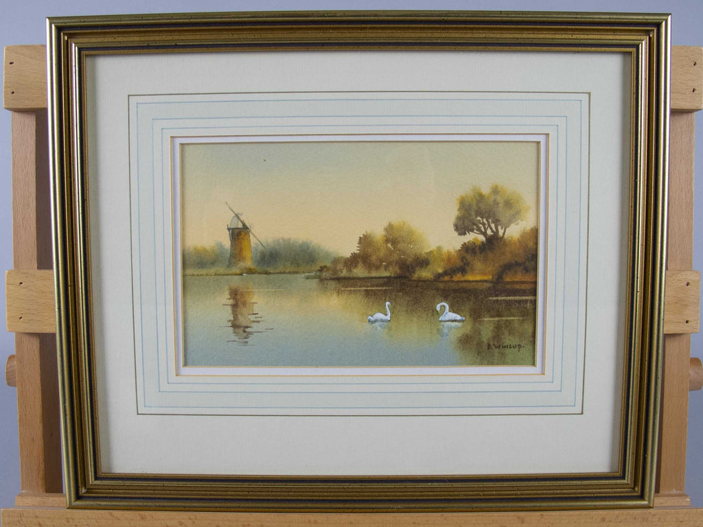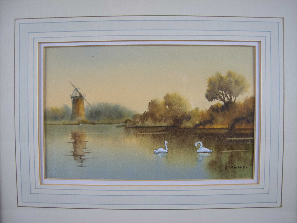 A watercolour depicting a Norfolk Broads scene by the contemporary Norfolk artist Donald Wincup (1934-2015).