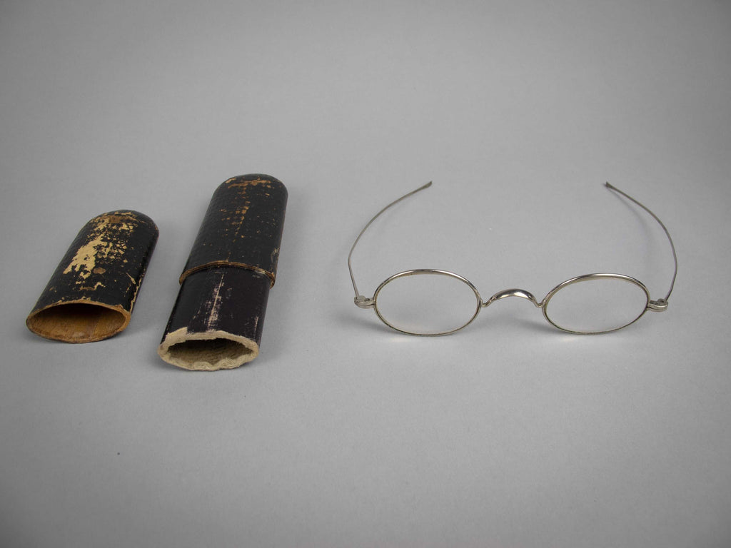 The spectacles come complete with an antique embossed paper and card glasses case.