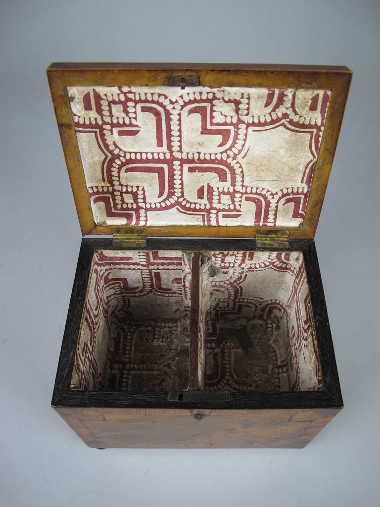 The wood to the lid has a subtle warp to the front right meaning it does not quite shut fully. It appears a previous boxwood repair has been made to the front left corner (please see photographs).