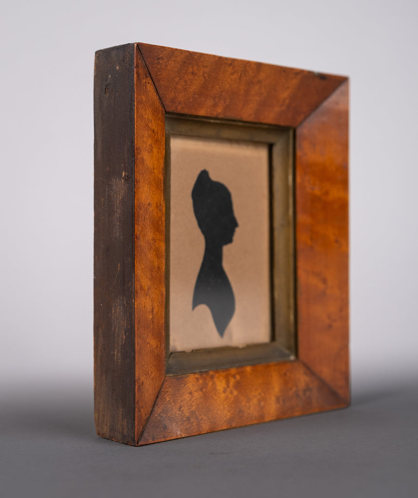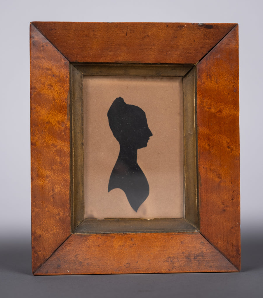 A charming early 19th century silhouette of a lady, cited as 'Jane Armstrong verso, housed in a maple wood frame.