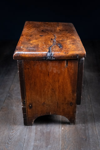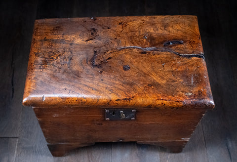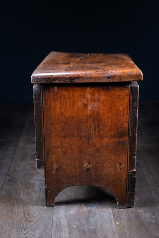 A charming early 19th century vernacular elm and pine coffer / chest of small proportions.