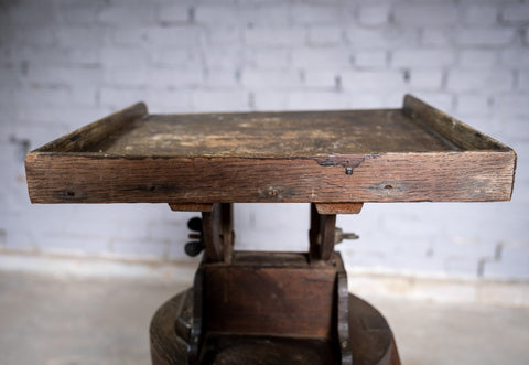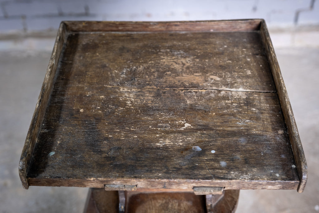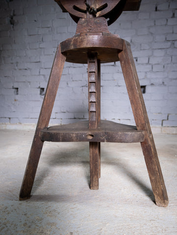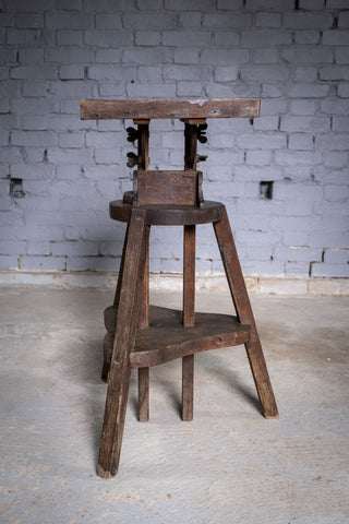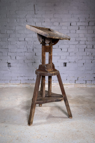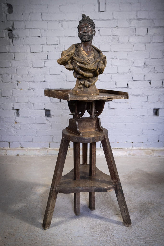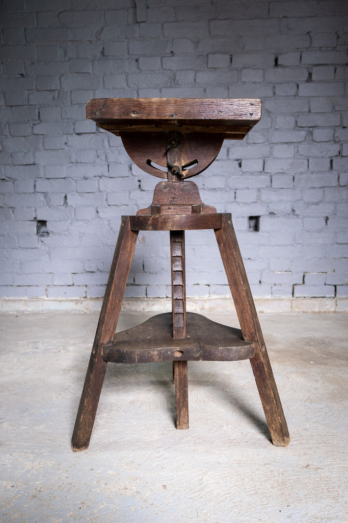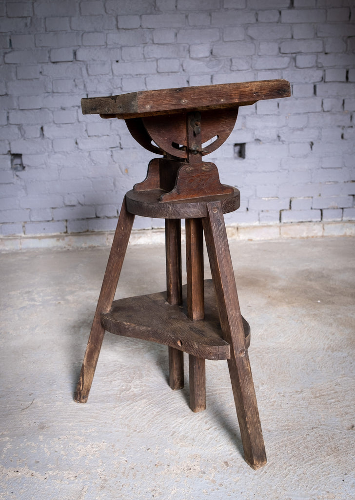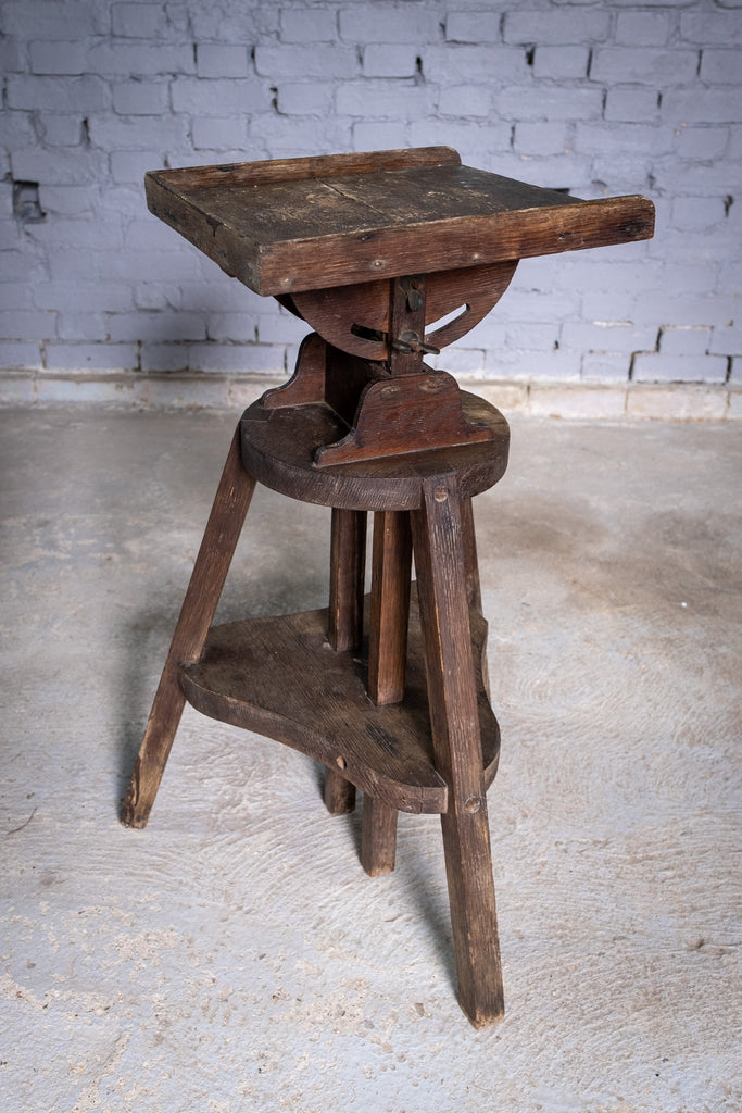 An substantial early 20th century sculpture stand / sculptor's saddle, fully height adjustable with a tilting top. The stand is in a wholly original condition with small splatters of paint and varnish to the top.