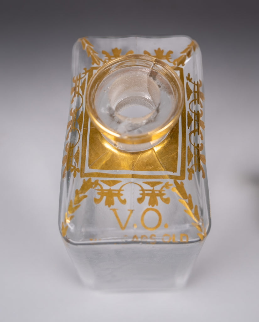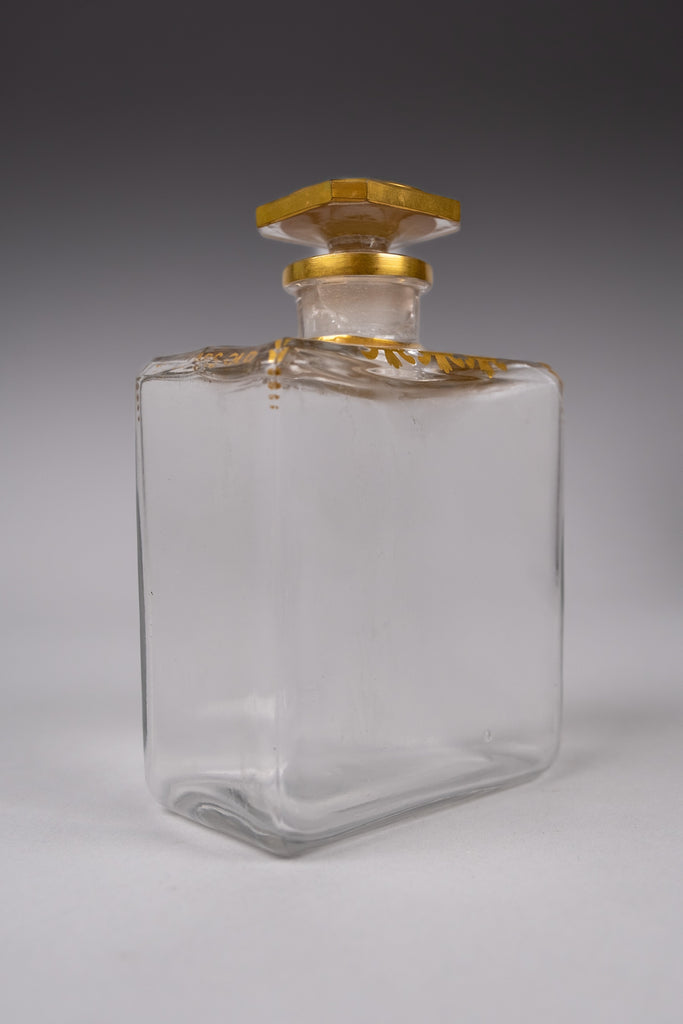 The decanter box is of very good proportions and of excellent quality. There is some wear commensurate with age to the book extremities but the exterior remains in a good condition overall. The glass bottle has some imperfections to the glass body and two hairline cracks to the neck (please see photographs) - fluid has been tested within the decanter and it remains functional with no leaks.