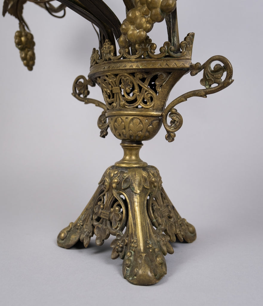 A stunning 19th century nine branch brass church candelabra of large proportions, c.1910. The candelabra is adorned with grapes, leaves, flowers and wheat and would have decorated the church altar between late summer and mid-autumn in celebration of harvest.