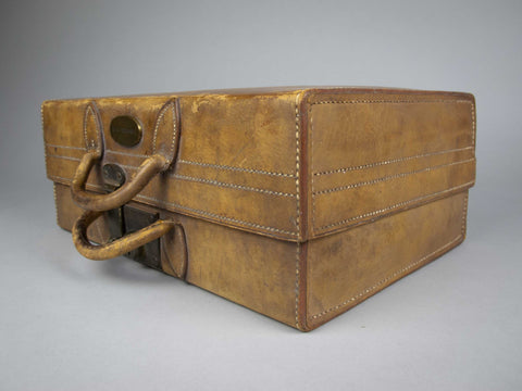 The despatch box is of exceptional quality, fully bound with tan leather, blind stamped decoration to the front, brass clasps and 'Secure A.W Patent Lever' lock. Note the lock does not click shut, but does remain closed when the clasp lever is down and remains closed whilst being carried.