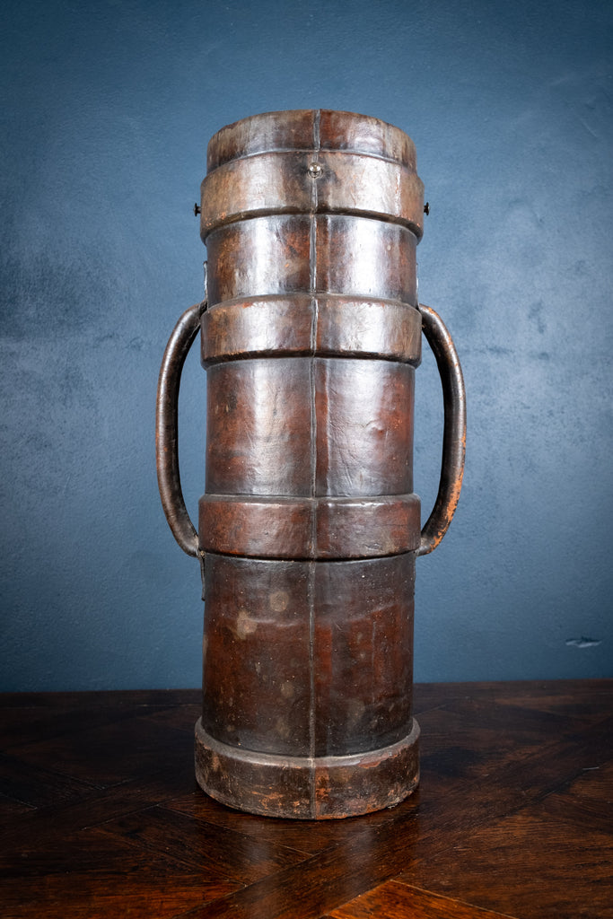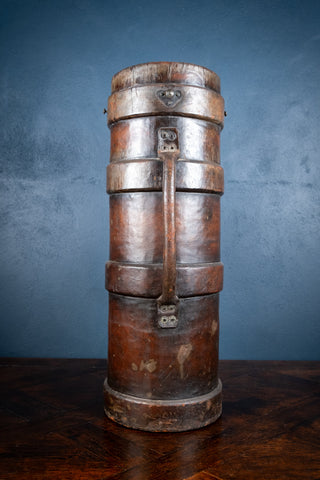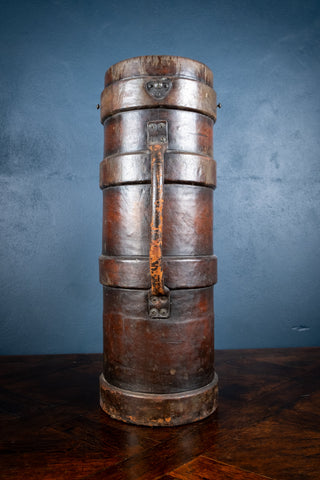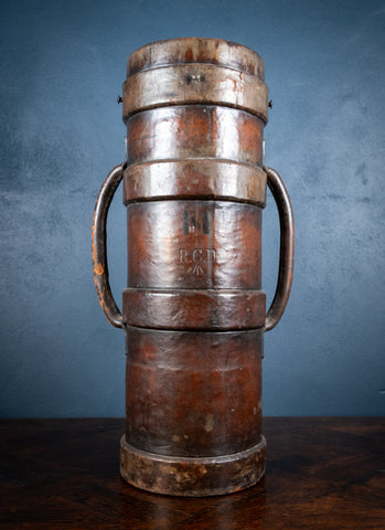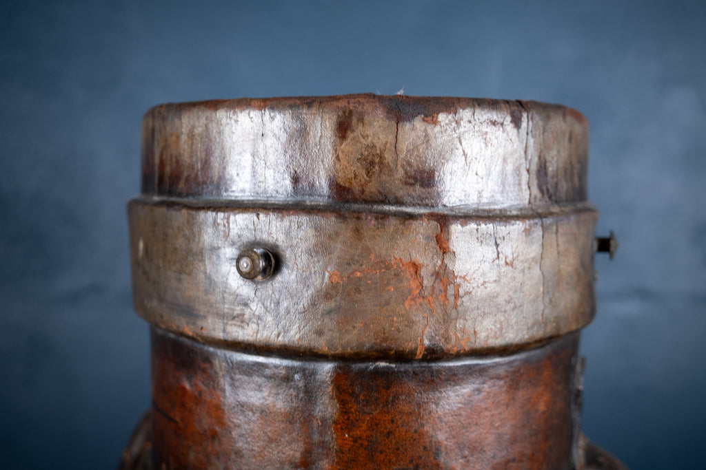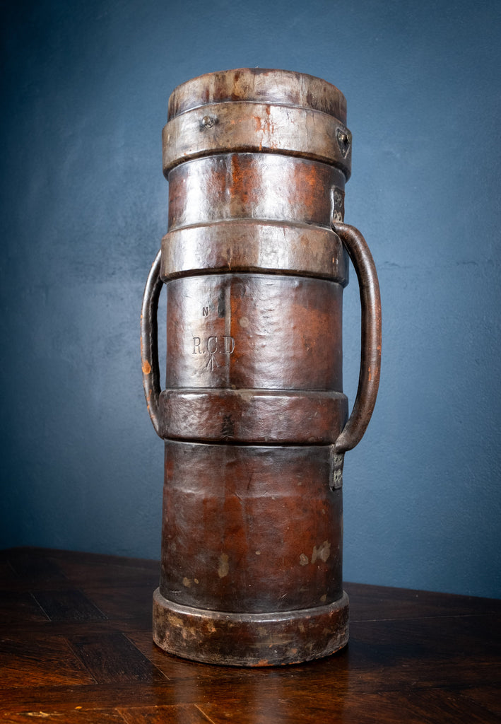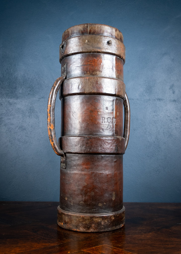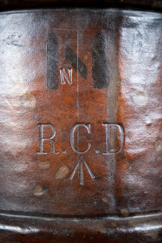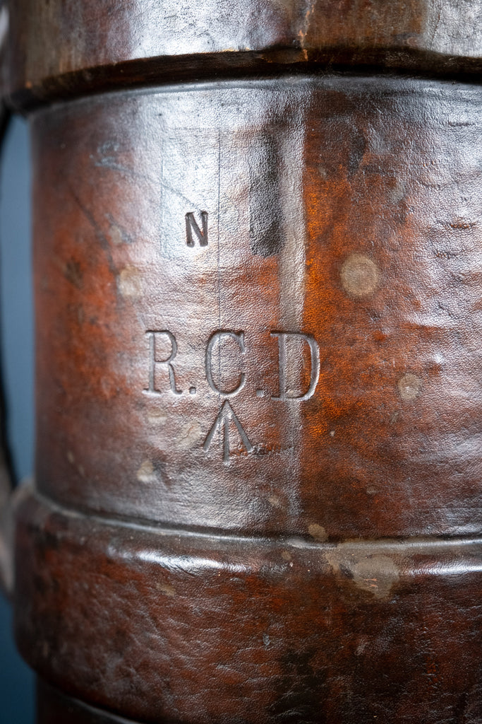 A fine example of an increasingly scarce World War I leather artillery shell carrier. Stamped 'R.C.D' to the front; probably of the 'Royal Canadian Dragoons', or possibly of the 'Royal Carriage Department'.