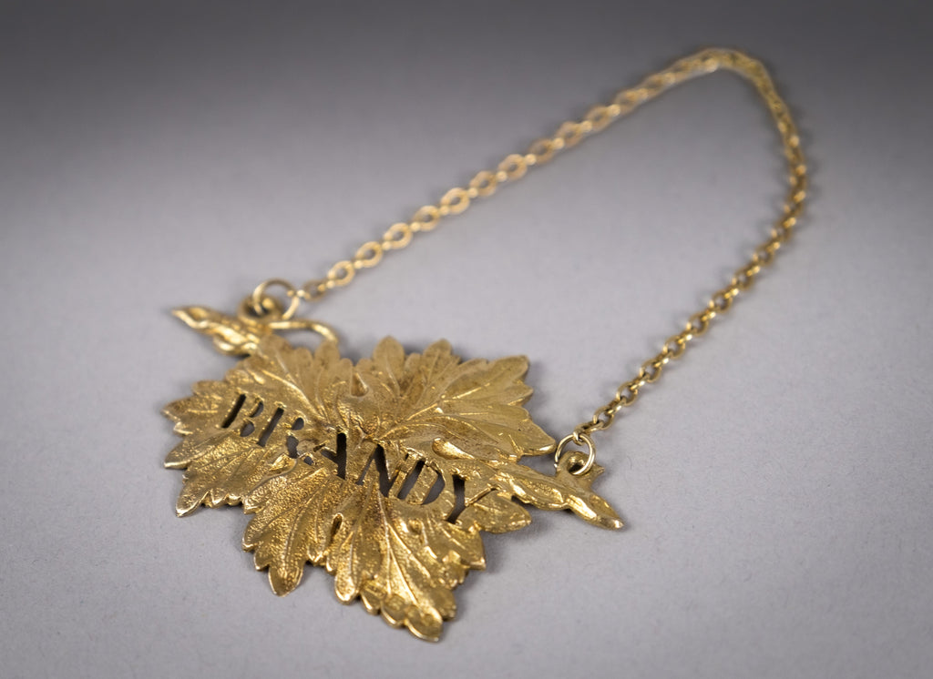 A scarce set of four silver gilt vine leaf decanter labels, each fully hallmarked for silversmiths SMD of London, 1968.