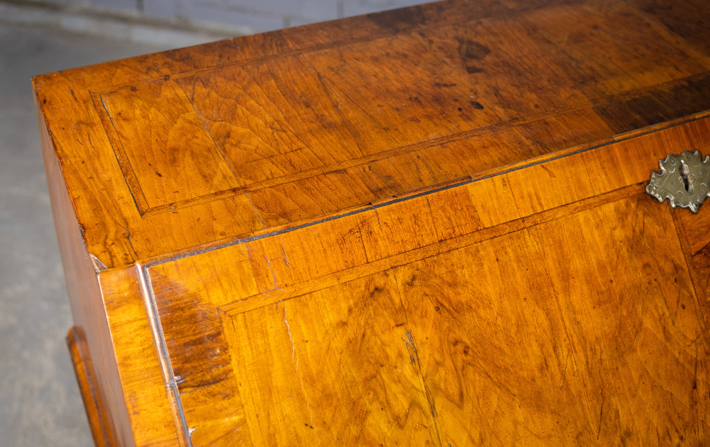 An attractive George I walnut and featherbanded bureau, c.1720.