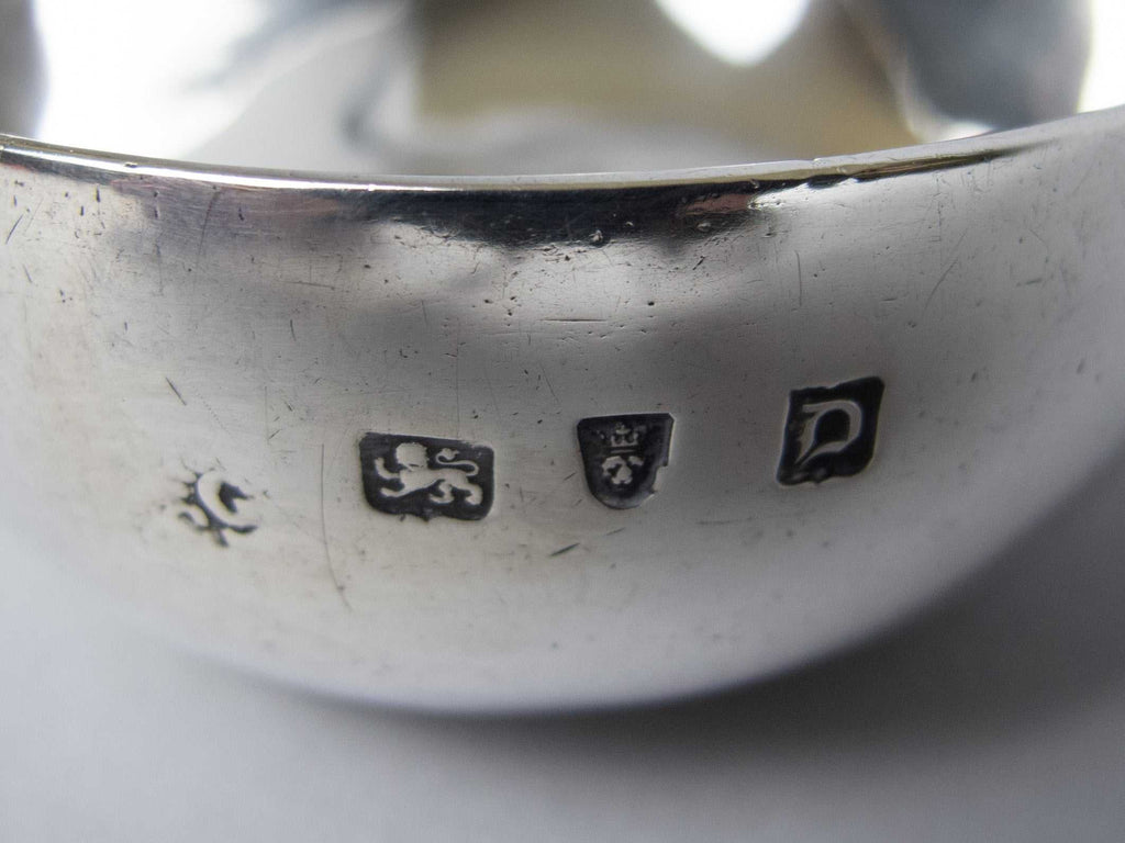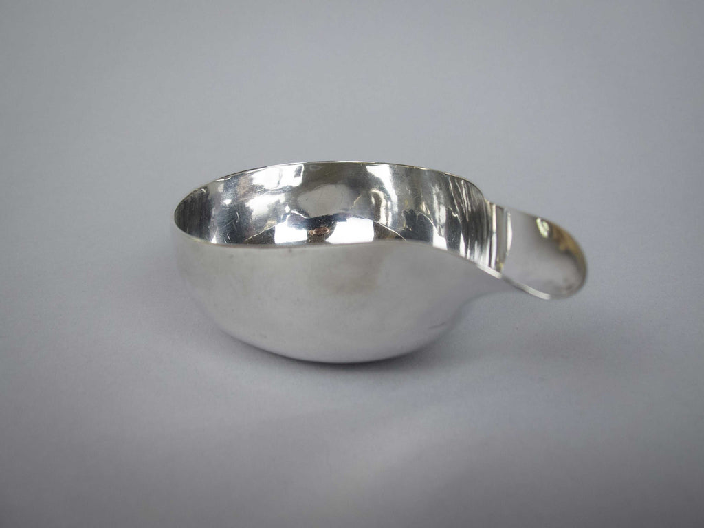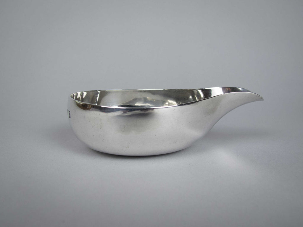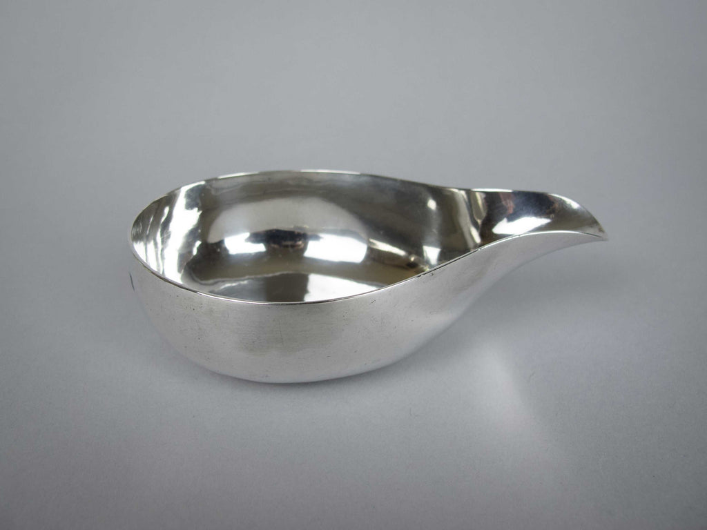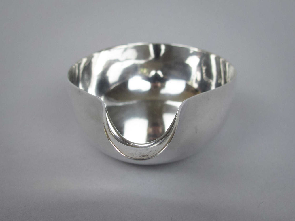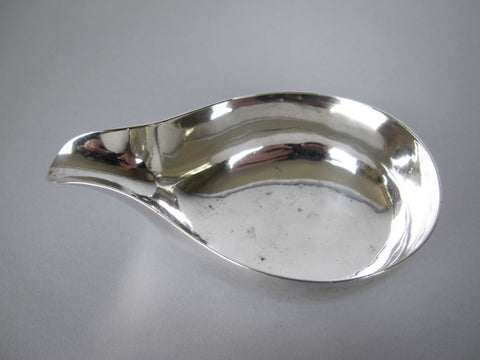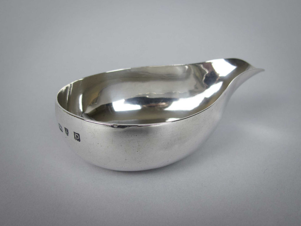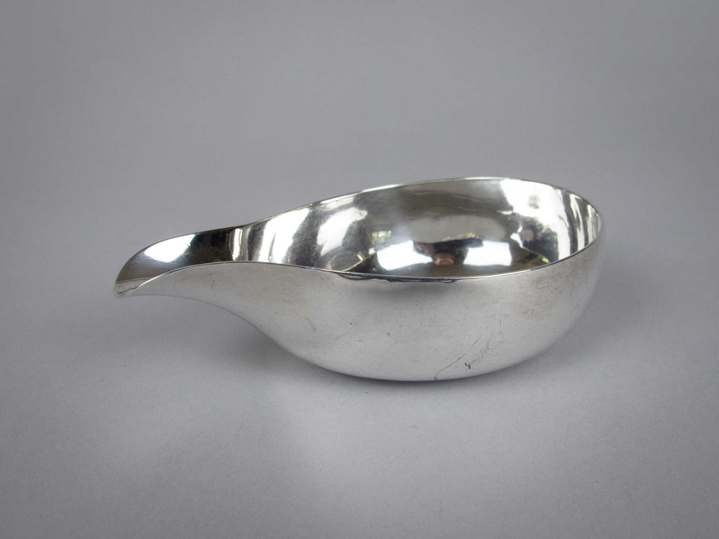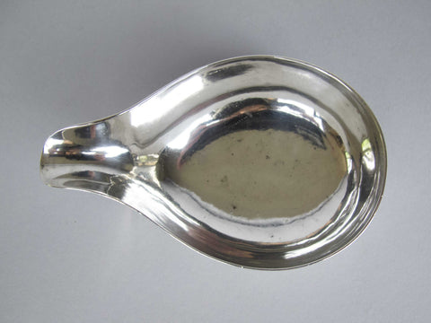 A sterling silver George II pap boat / feeding bowl, fully hallmarked for London, 1759. The maker's mark is rubbed.