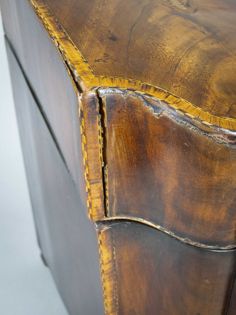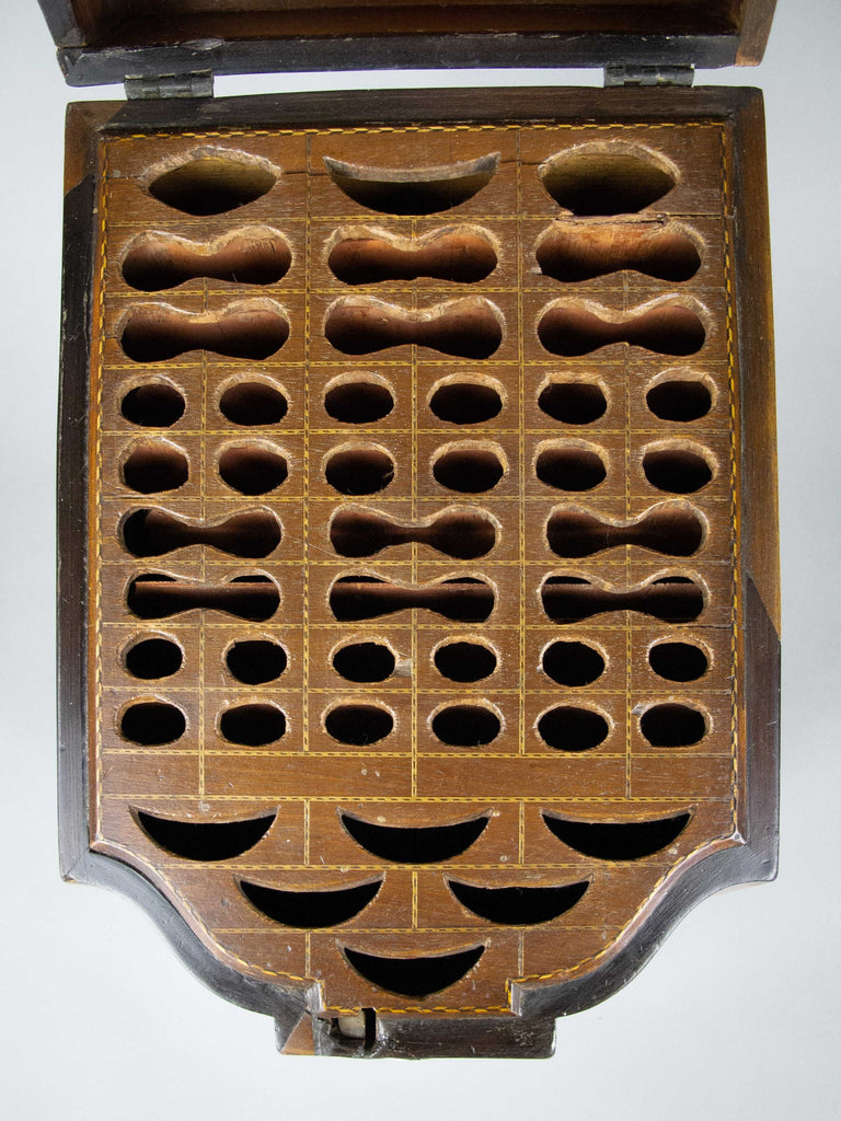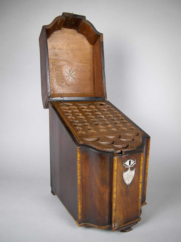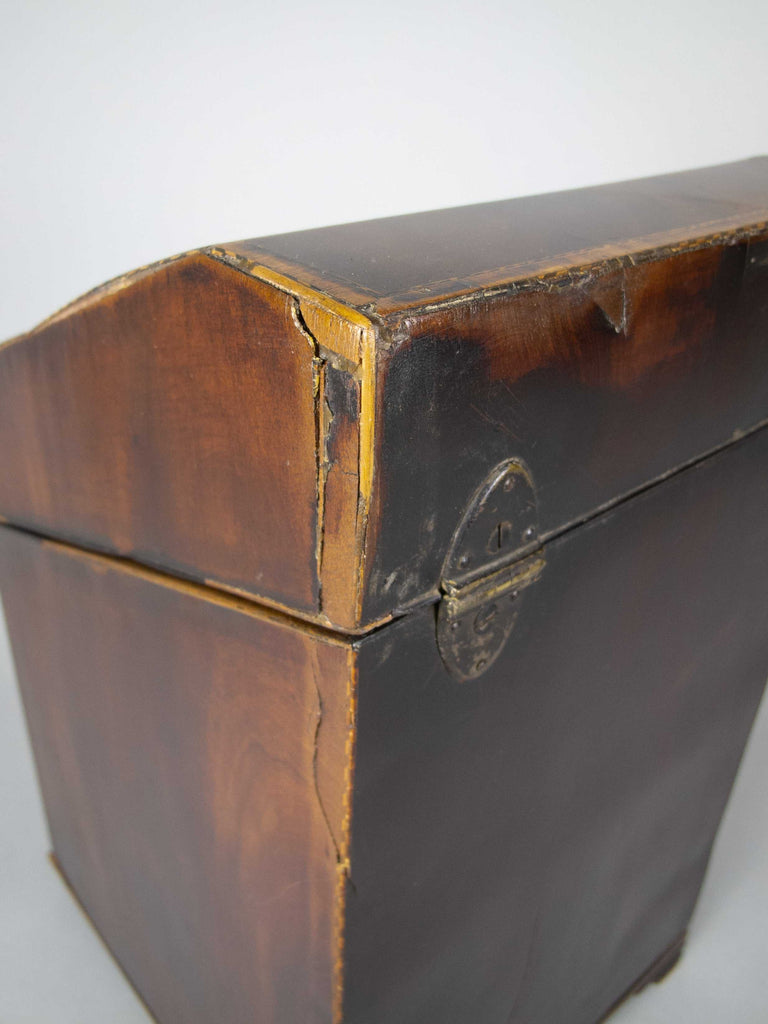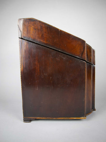 The knife box shows signs of age and wear particularly to the front foot, extremities and to the top right section of the fitted interior (please see photographs). Regardless, the box remains an extremely attractive piece. The lid sits well open and closed, and the hinges operate with ease.