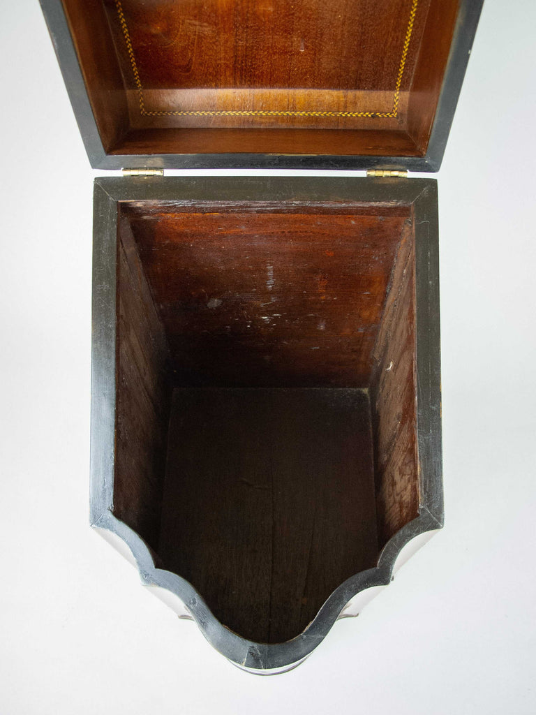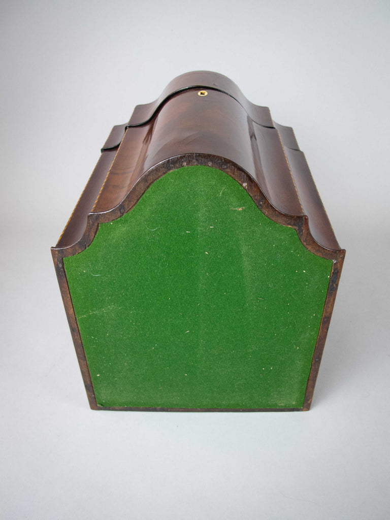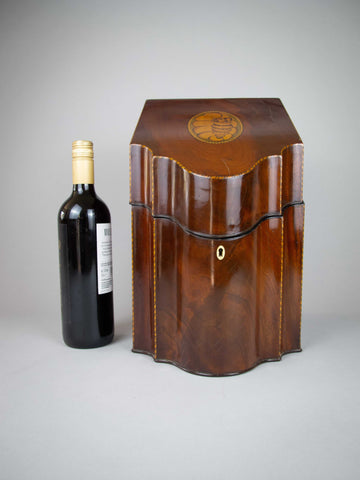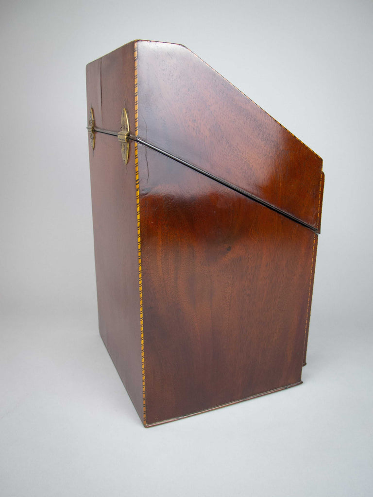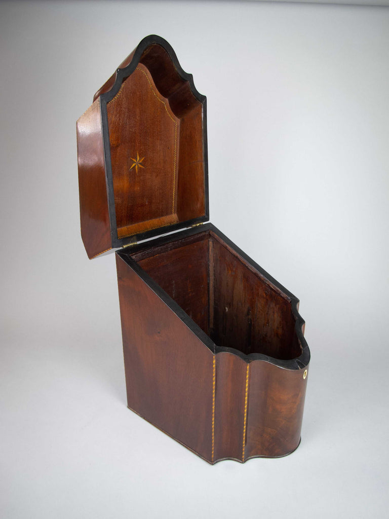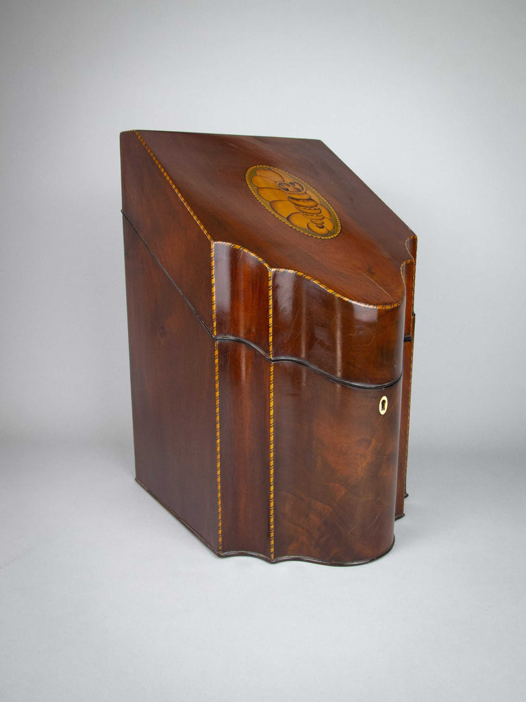 George III Mahogany & Satinwood Inlaid Serpentine Knife / Cutlery Box