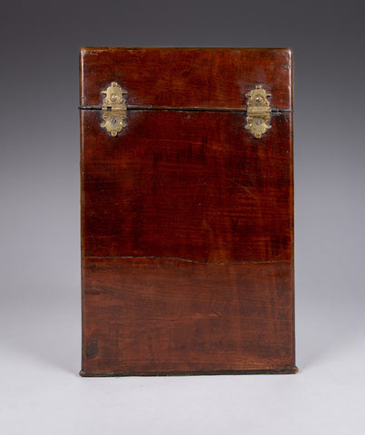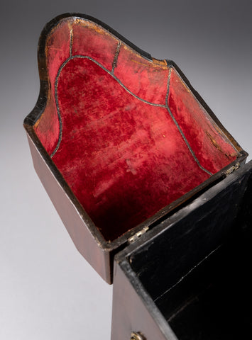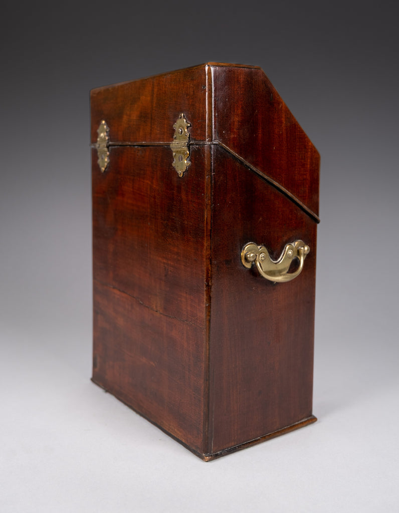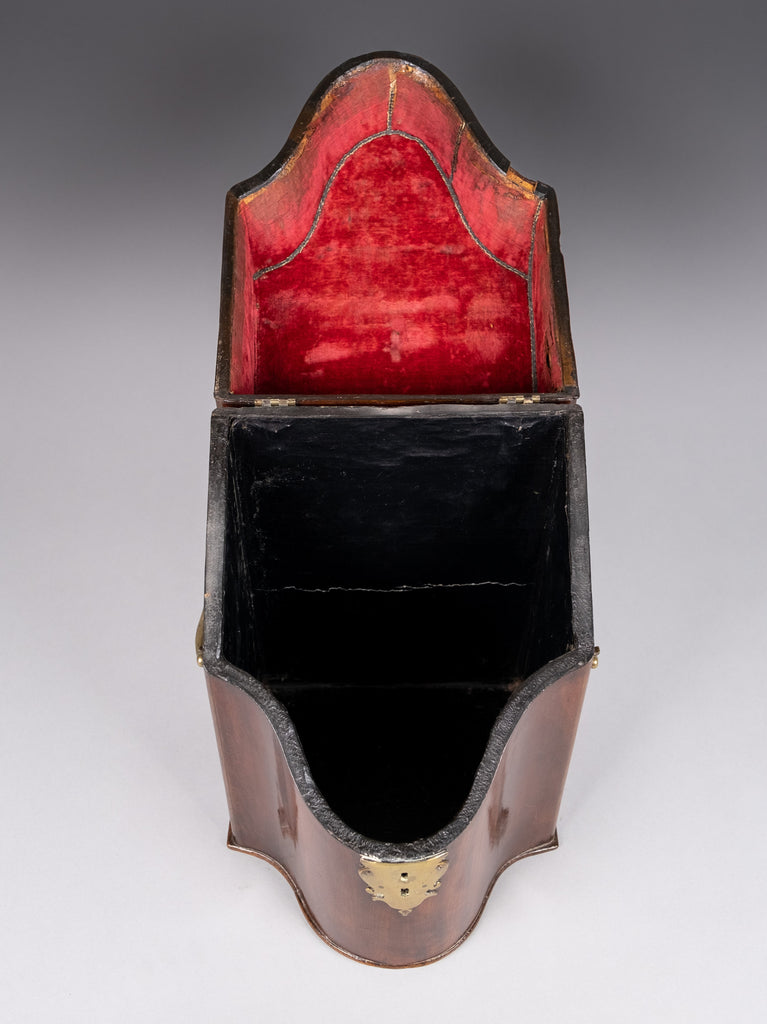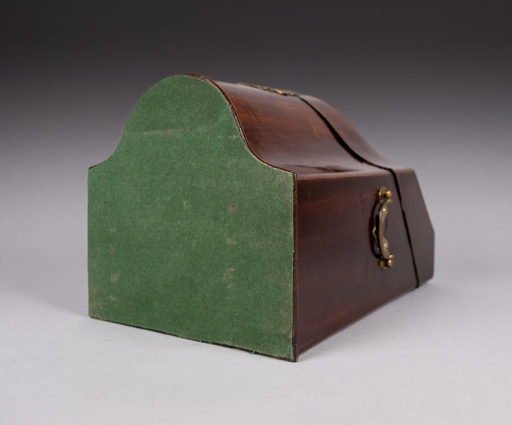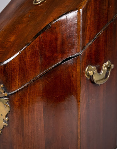 A George III late 18th century mahogany serpentine fronted knife box with brass handles.