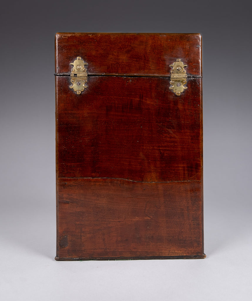There is a nibble to the front right lid rim (please see photographs) and one small clasp to the rear left hinge is absent. The box is lacking its fitted interior but retains a red felt lining to the interior lid and is clean and neat to the interior base, making it perfectly functional for correspondence or general storage.