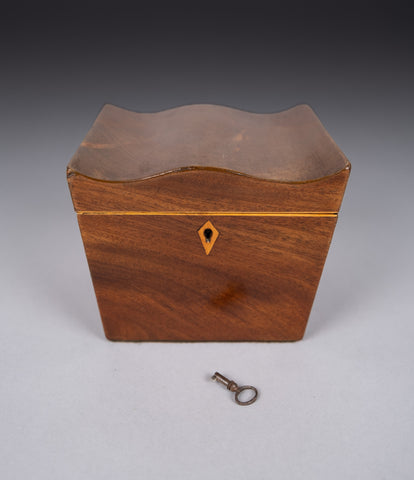 A charming George III mahogany serpentine top single tea caddy with key, c.1790
